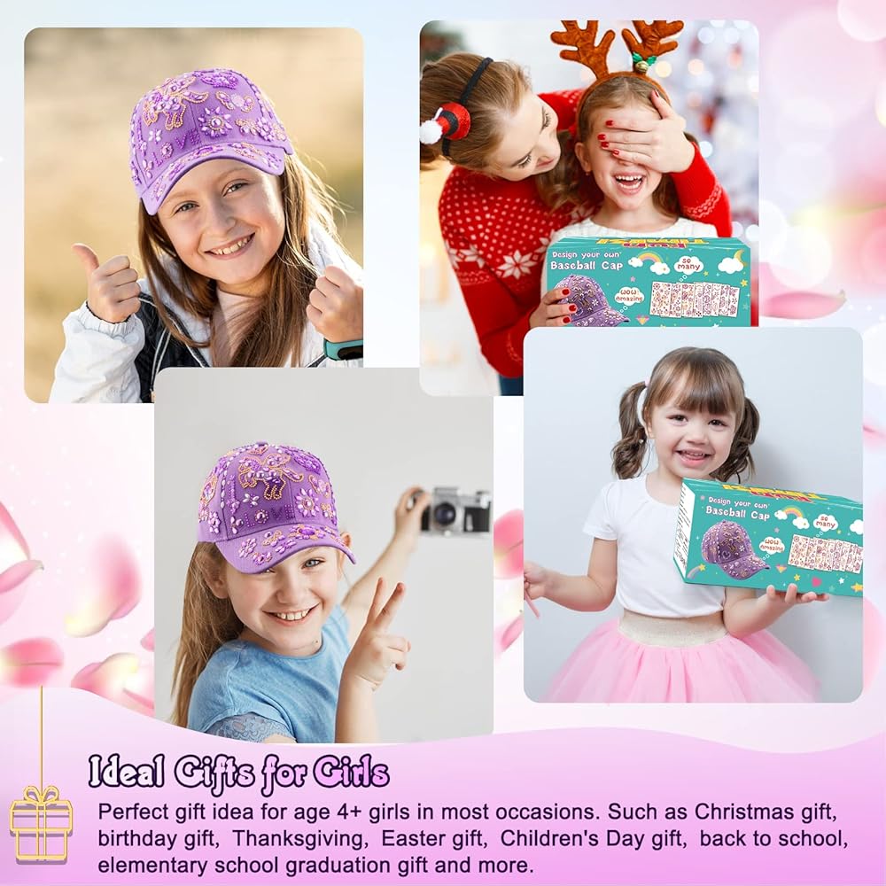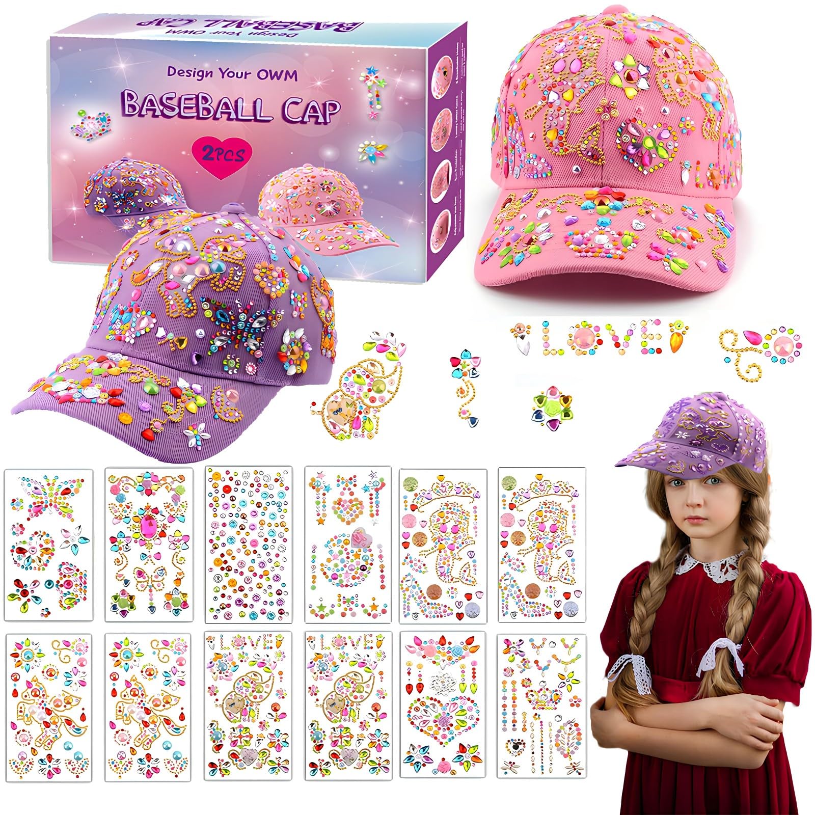 Aragallant Regalo Bambina 5 6 7 8 9 10 Anni, 4 PCS Kit Fai Da Te Cappellino Da Baseball Con Gemma Stickers E Braccialetti, DIY Berretto Baseball Idee Regali Ragazze Natale Compleanno