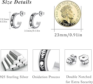 Godi una riduzione su PHNIBIRD Phnibird Clip Orecchino Unisex In Argento Sterling 925, Rivesto In Resina Nera, Stile Minimalista, Sobrio Per Uso Quotidiano. Acquista i tuoi stili preferi. Spedizione gratua da 19€ d'acquisto Registrati e ottieni 21% di sconto sul tuo primo ordine Filosofia del design: Il marchio PHNIBIRD si rivolge a donne e uomini moderni con collezioni sofisticate, facili da abbinare e diverse, e i nostri modelli sono sempre rimasti fedeli a questa filosofia Argento ossidato vintage: Questi orecchini a bottone con teschio sono realizzati in argento 925, vulcanizzato a mano e invecchiato, con una forte sensazione artigianale, sono durevoli, resistenti allo sbiadimento e anallergici Orecchini a bottone con teschio pirata: Un antico teschio pirata è stato lavato sulla spiaggia e semisepolto nella sabbia Il teschio di questo antico pirata è fuso in argento sterling per un vecchio look consumato Regalo perfetto: Che si tratti di parenti, amici, amante o te stesso, questi orecchini a bottone con teschio sono una buona scelta regalo Perfetto da indossare a feste, concerti, carnevali e può aggiungere un tocco di stile e personalità al tuo stile generale Orecchini Cerchio Uomo 925 Sterling Orecchini D'argento Per Donne Mucca Toro Testa Di Bue Orecchini Uomo Specifiche del prodotto: Dimensioni del diametro esterno dell'orecchino: 9 mm✕9 mm (0,37✕0,37 pollici) Materiale: argento sterling 925 Accessori: scatola di imballaggio squisita