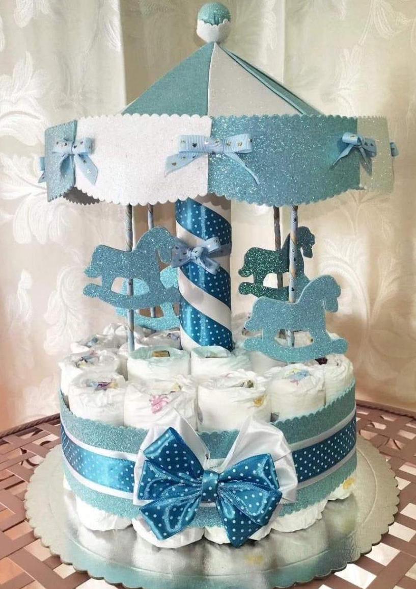 Torta Di Pannolini Trudi A 3 Piani, Con 55 Pannolini, Idea Regalo