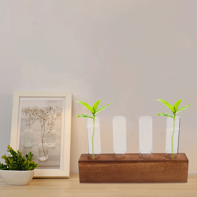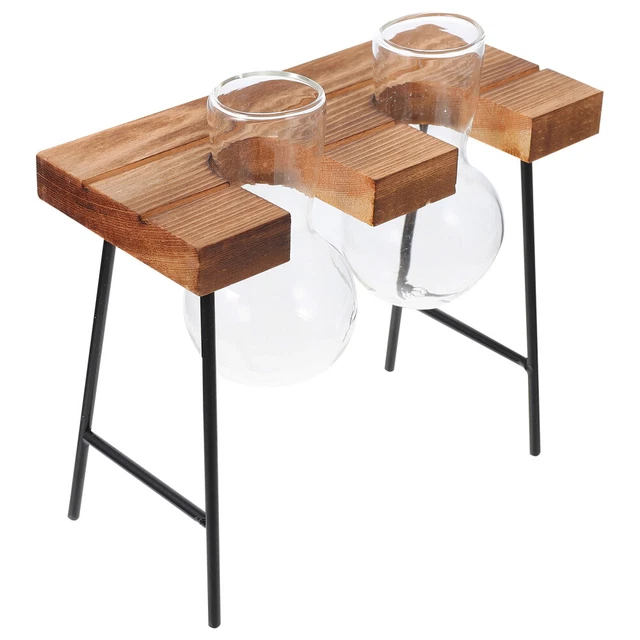Vaso Per Provette In Legno, Vaso A Bulbo Con Supporto, Vetro Provetta Per Piante, Provetta Per Piante Idroponiche, Stazione Di Propagazione, Per Decorazione Della Casa Dell'ufficio (3 Bulb Vase