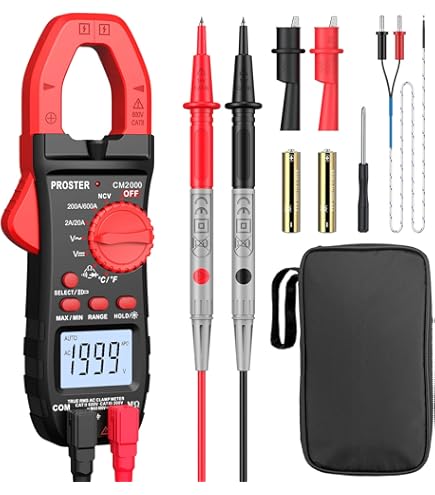 [Ricaricabile e Sicura]: Con una batteria ricaricabile integrata e una torcia brillante, le lunghe ore di lavoro e il cablaggio al buio non sono più un problema. I pulsanti curvi e il design ergonomico del corpo garantiscono una presa più confortevole. Multimetro Digitale Intelligente LCD A Colori Tester Automatico Con Differenza Tra Amperometro E Multimetro Caratteristiche: Pinza di corrente, multimetro intelligente e rilevatore di tensione 3 in 1 Auto range, test a doppia modalità auto/manuale Test automatico di tensione/corrente AC DC, continuità e resistenza Misure di capacità, diodi, duty cycle e frequenza Possibilità di azzeramento prima della misura della corrente CC Tester NCV con cicalino Controllo dei fili sotto tensione metallo-metallo con un solo puntale Misure di temperatura supportate, termocoppie non fornite Grande display LCD a colori con: Valore di prova con cifre grandi Simbolo di autospegnimento, indicazione di batteria scarica Protezione antiscottatura e antiscarica Torcia a LED e custodia in dotazione Alimentazione con batteria interna ricaricabileSpecifiche: Display: 6000 conteggi Tensione DC: 0.001-610V 0.001V ±(0.8%+3) Tensione AC: 0,050-610V 0,001V ±(1,0%+3) Corrente DC: 1-100A 0,1A ±(2,5%+5) Corrente AC: 1-100A (40-1000Hz) 0,1A ±(2,5%+5) Resistenza: 0,1Ω-60MΩ 0,1Ω ±(1,2%+3) Capacità: 0,010uF-60 mF 0,001uF ±(3,5%+8) Frequenza: 1-9,999 MHz 0,001 Hz ± (2,0%+10) V-Alert (NCV): fino a 1000V di tensione AC Ricerca del filo vivo: Sì Continuità: Sì Diodo: Meno di 3V Temperatura ambiente: 0-50℃ ±2℃ Alimentazione: batteria ricaricabile da 3,7V Dimensioni: 192 x 36 x 30 mm Peso: 102 gConfezione: Tester pinza amperometrica U1 Puntali di prova Cavo di ricarica Custodia Manuale d'uso in inglese, PDF in italiano via e-mail e può anche essere un rilevatore di tensione senza contatto per la ricerca di fili sotto tensione. Manuale d'uso in italiano via e-mail, servizio clienti 24/7. Caratteristiche: Pinza di misurazione AC DC , multimetro digitale e rilevatore di tensione 3 in 1 Test automatico di corrente AC DC senza contatto Test automatico di tensione, continuità e resistenza Test di capacità, diodo, ciclo di lavoro, e frequenza i Supporta anche la misurazione automatica senza contatto della corrente CA o CC. [Tester Multifunzione]: Oltre alla misurazione automatica di tensione/corrente CA e CC, resistenza e continuità, questo multimetro TRMS è in grado di misurare anche la capacità, il diodo, la frequenza, il ciclo di lavoro ecc. Questo amperometro voltmetro soddisfa gli standard CE e le norme di sicurezza CATIII 600V per un uso più sicuro.