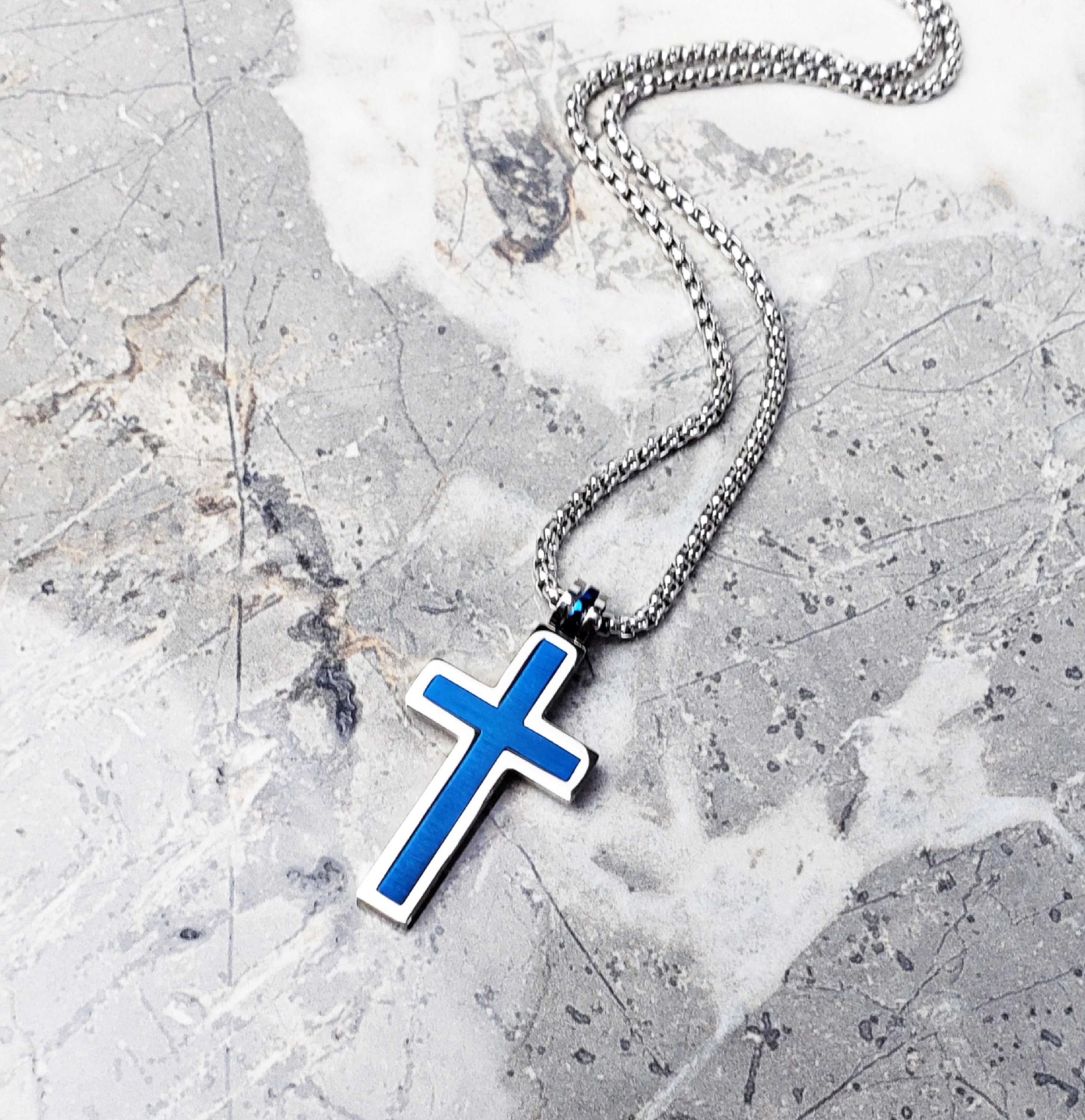 Collana A Croce Da Uomo, In Acciaio Inossidabile, Con Ciondolo A Forma Di Croce, Colore: Blu, Nero, Oro, Ideale Come Regalo Per Uomini, Donne, Ragazzi, Ragazze, Blu, Utile E Alla Moda