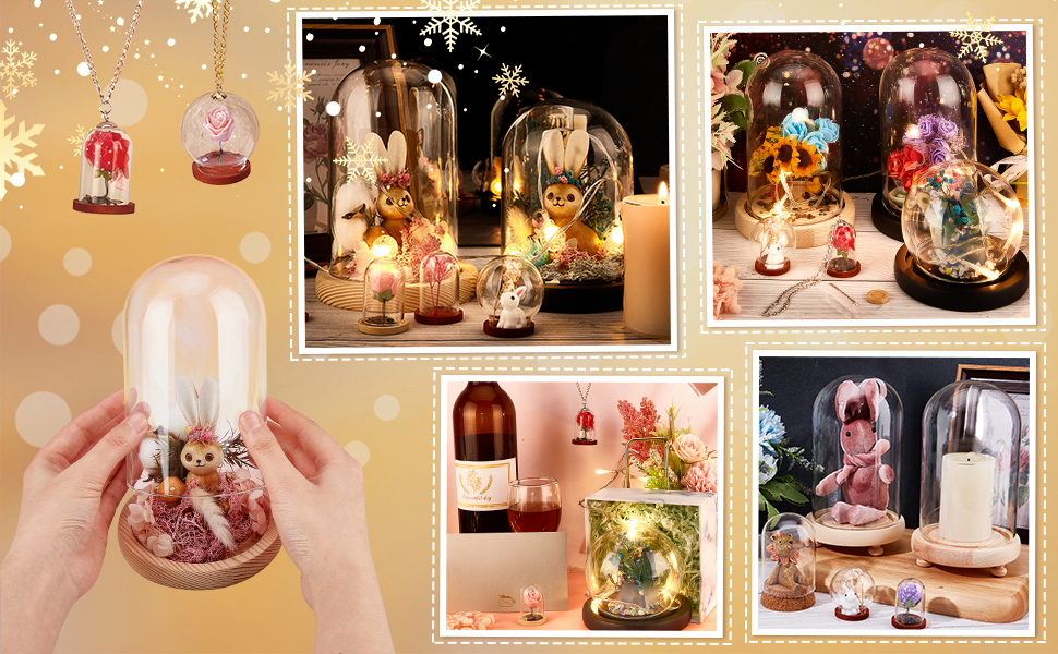 PH PandaHall Cloche A Cupola Con Display In Vetro, Vetrina Decorativa Per Vasetti Decorativi Con Copertura A Cupola In Vetro Da 13.5 Cm Per La Conservazione Dei Fiori