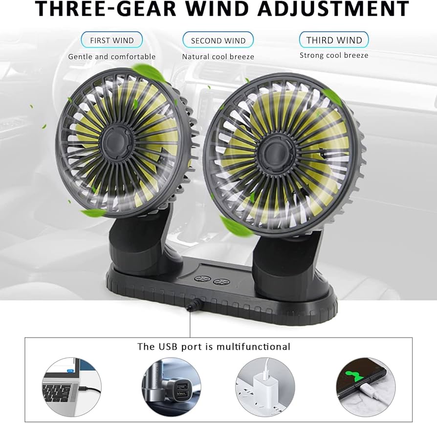 Ventole Di Raffreddamento A Doppia Testa | Ventola Di Raffreddamento Per Auto Con USB | Ventilatori Per Auto A 3 Velocità, Ventilatori Per Auto
