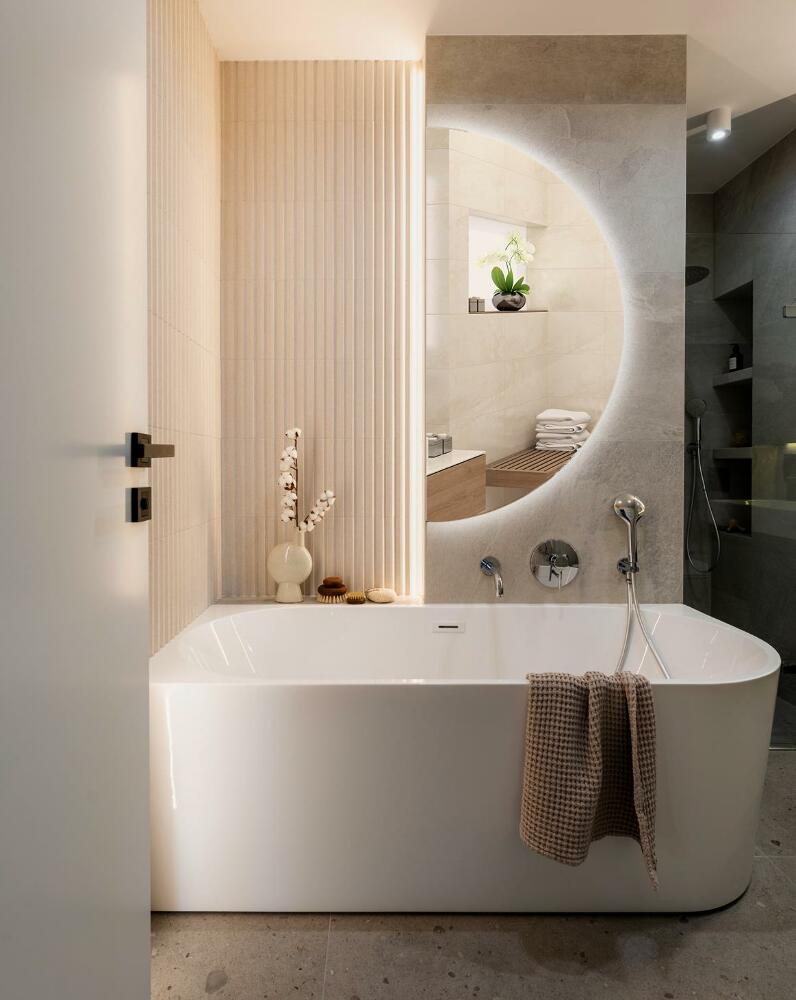 Specchio Da Parete A LED Decorativo Moderno Semicerchio Retroilluminato Specchio Da Bagno Impermeabile Senza Nebbia