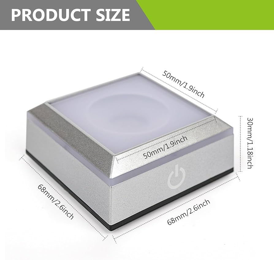 【Due Opzioni di Alimentazione】La base luminosa a LED può essere alimentata da 3 batterie AAA (non incluse) o tramite connessione USB. 【Interruttore Tattile】Base Luminosa a Led Offre 6 modalità di colore, tra cui la rotazione lenta di vari colori, la rotazione veloce di vari colori, l'illuminazione bianca costante, l'illuminazione rossa costante, l'illuminazione blu costante e l'illuminazione verde costante. Piattaforma Girevole QENETY A LED, Multicolore, Quadrata, Espositore, Con Interruttore Sensibile Al Tocco, In Cristallo 3D (argento 2 Concavo) : Amazon.it: Illuminazione Base Luminosa 【Materiale di Qualità】La base luminosa a LED è realizzata in ABS di alta qualità con un materiale spesso per garantire sicurezza e affidabilità nell'uso. Ogni base è dotata di 4 LED super luminosi. 【Versatilità】Questa base luminosa a LED è perfetta per mettere in mostra oggetti come opere in vetro, gioielli, ecc. La base luminosa a LED offre 6 diverse modalit à di colore: cambio lento tra più colori, cambio veloce tra più colori, luce bianca costante, luce rossa costante, luce blu costante e luce verde costante È di dimensioni ridotte e leggera, facile da trasportare. 【Caratteristiche del Prodotto】Riceverai 2 Base Luminosa a Led con un interruttore tattile sensibile. Un cavo USB è incluso con la base, ma l'adattatore di alimentazione non è incluso.