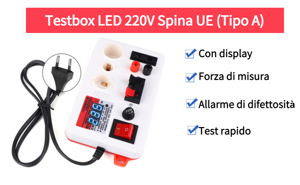 Led 220v Portalampada Per Lampadina A LED, Tensione Di Alimentazione, Supporto Rapido Per Tester Rapido Per E27 B22 E14, Scatola Di Prova Per Lampadina, Spina Europea Con Display Di Alimentazione - AliExpress Tester Elettrico La funzione di allarme automatico della lampada difettosa mette in allarme le lampade che non soddisfano la gamma standard. Tester per lampada rapida a LED, Tester per tensione di tensione della lampada a LED Scacchiera 220 V Spina UE per lampade semilavorate o finite di prova(Type A (with display Basta collegare il LED nei fori corretti e premere il pulsante per eseguire il test. Realizzato con materiali di alta qualità, durevoli usare. L'interfaccia del portalampada è di tipo plug-in rapido, comoda e veloce. La qualità del prodotto è garantita. Premere brevemente il pulsante per passare dalla visualizzazione tensione a alimentazione.