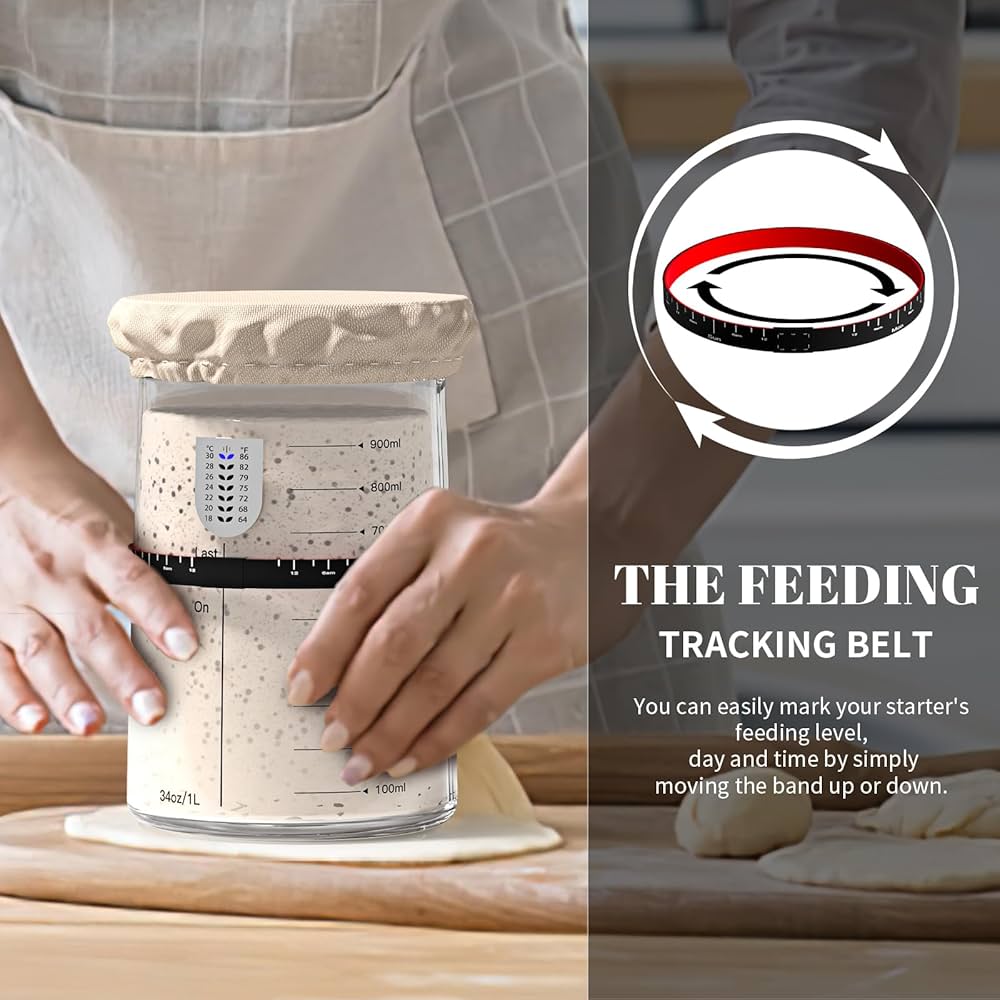 Kit Per Pasta Madre, Kit Portatile Per Pane A Lievitazione Naturale Con Fascia Di Alimentazione Con Data Contrassegnata Per Vasetti Con Diametro Da 3
