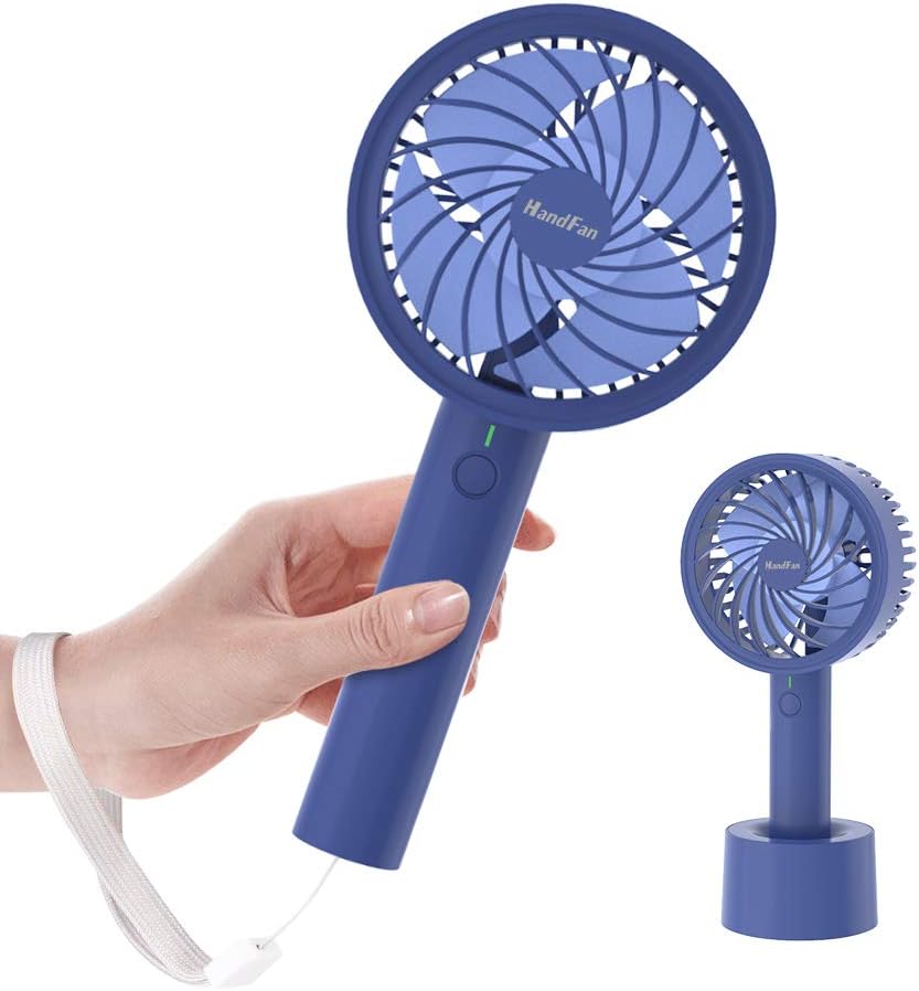 Koonie Ventilador De Mano Portátil, Ventilador A Pilas Con Base, 8 Horas, Pantalla Digital, 5 Velocidades, Ajustable A 90°, Mini Ventilador Recargable
