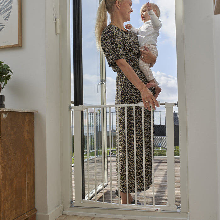Un cancello per scale , cancello per bambini, cancello per cani tutto in uno: BabyDan Esbjerg è un cancelletto di sicurezza molto versatile che può servire a molti scopi nella tua casa mantenendo il tuo bambino al sicuro da qualsiasi danno Rende il processo di installazione rapido e semplice senza strumenti aggiuntivi richiesti. Si apre in entrambe le direzioni per maggiore flessibilità. Conduciamo otto diversi test per simulare varie interazioni con i bambini, garantendo che il nostro cancello di sicurezza rimanga sicuro indipendentemente da quanto venga spinto o tirato. Duraturo e Resistente Prodotto in Danimarca da BabyDan, un pioniere nella sicurezza dei bambini dal 1947, questo cancelletto per bambini è costruito per durare. Ideale per Aperture Strette Il BabyDan Esbjerg Safety Gate è specificamente progettato per spazi stretti, adattandosi ad aperture da 60,5 cm a 66,5 cm. FACILE DA USARE CON UNA SOLA MANO: Il cancello è progettato per comodità, permettendoti di aprirlo e chiuderlo facilmente con una mano, anche quando porti il tuo bambino o altri oggetti. Segui le istruzioni semplici e installalo in pochi minuti, senza bisogno di strumenti extra. I nostri prodotti sono sottoposti a test estensivi e rigorosi presso il BabyDan Test Centre per garantire che siano tra i più sicuri disponibili. Larghezza: Regolabile per adattarsi ad aperture tra 60,5 cm e 66,5 cm Il BabyDan Esbjerg è dotato di un design con montaggio a pressione che garantisce un'installazione sicura senza danneggiare le pareti o i telai delle porte. PRODOTTO IN DANIMARCA DA BABYDAN: Manufactured in Denmark by a trusted leader in child safety since 1947, the BabyDan Esbjerg riflette decenni di esperienza e impegno per soluzioni di sicurezza di alta qualità. BabyDan Esbjerg Safety Gate - Un Cancello per Scale Progettato per Spazi Stretti Assicurati che la tua casa sia un rifugio sicuro per il tuo piccolo con il BabyDan Esbjerg safety gate. Inoltre, accedi all'app gratuita OnBox per video di installazione interattivi e facili da seguire passo dopo passo. BabyDan Esbjerg, Cancelletto Extra Sottile A Pressione, 60,5-66 Cm GARANTIRE LA VESTIBILITÀ PERFETTA: i cancelletti BabyDan sono disponibili in diverse misure. Si apre in entrambi i sensi, fornendo flessibilità in aree trafficate. L'app gratuita OnBox fornisce video interattivi passo dopo passo per un'installazione facile. COSTRUZIONE DUREVOLE E DI LUNGA DURATA: Costruito con acciaio inossidabile verniciato a polvere di alta qualità e raccordi in plastica durevoli, il BabyDan Esbjerg cancello offre protezione e sicurezza durature per la tua famiglia. TESTATO E APPROVATO PER LA SICUREZZA: BabyDan Esbjerg è rigorosamente testato e approvato per soddisfare gli standard di sicurezza europei EN 1930:2011, garantendo la sicurezza del tuo bambino in qualsiasi area della tua casa. Opzioni di Colore: Disponibile in Nero Classico o Bianco Immacolato Perché Scegliere BabyDan Esbjerg? Affidabile a Livello Globale: BabyDan è leader nella sicurezza dei bambini da oltre sette decenni, garantendo che tu scelga un prodotto affidabile. Rinomato dalle famiglie di tutto il mondo, questo cancello unisce versatilità, sicurezza e convenienza, rendendolo un'aggiunta essenziale a qualsiasi casa. Conformità: Rispetta gli Standard di Sicurezza EN 1930:2011 Il cancello BabyDan Esbjerg presenta un design innovativo montato a pressione per un'installazione sicura e amica delle pareti. Installazione Senza Problemi: Risparmia tempo e fatica con l'installazione montato a pressione, evitando la necessità di strumenti o danni alle pareti. I nostri cancelli sono testati sia internamente che da istituti accreditati esterni come TÜV e Bureau Veritas. Gli accessori in plastica sono rigorosamente testati per garantire che resistano alla prova del tempo, offrendo alla tua famiglia anni di sicurezza affidabile. SLIMFIT CANCELLETTO DI SICUREZZA PER BAMBINI E ANIMALI DOMESTICI: Questo versatile cancello è perfetto per mettere in sicurezza bambini e animali domestici in spazi stretti, garantendo tranquillità alle famiglie con bambini piccoli e amici pelosi. L'operazione con una sola mano è progettata per la comodità, permettendoti di aprire il cancello anche quando porti il tuo bambino.
