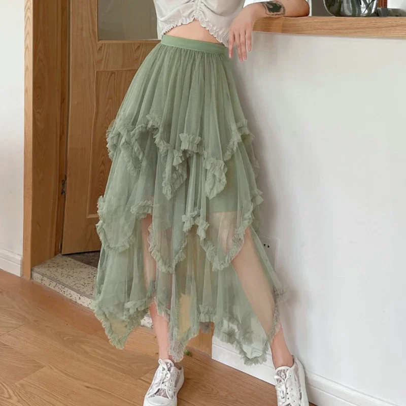 Gonne Di Tulle Irregolari Da Donna Gonna Tutu A Rete Elastica A Vita Alta Moda Gonne Lunghe A Pieghe Gonna Midi Saias Faldas Jupe Femmle - AliExpress