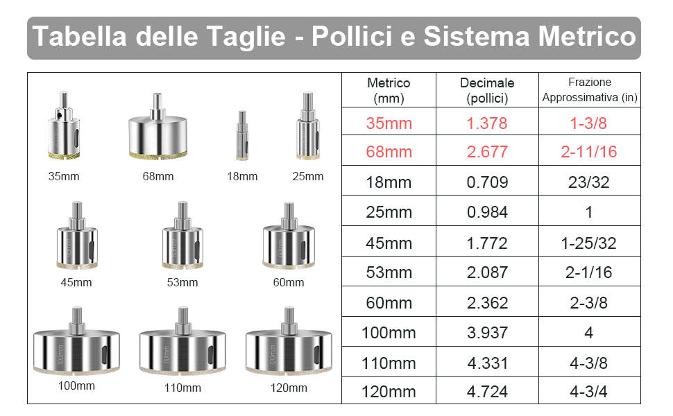 IN STOCK: Sega a tazza diamantata da 68 mm, punta da trapano con guida centrale per punta da trapano diamantata , sega a tazza rivestita diamantata per tagliare vetro, piastrelle, ceramica, marmo, calcare, , RTN IT 0714 151827 al miglior prezzo. Consegna Obiettivo: Uno strumento indispensabile per professionisti e principianti, e può essere utilizzato come regalo per famiglie, principianti, progetti artigianali, appassionati di fai da te, ecc., facile da usare. Può essere utilizzata per praticare fori in pietre leggere, come vetro, piastrelle in ceramica, marmo e granito, e utilizzata con trapani elettrici e trapani a percussione. Fresa A Tazza PUNTA SEGA A TAZZA DIAMANTATA 20 Mm X FORARE VETRO CERAMICA MARMO VETRORESINA Punta Trapano Tazza La punta è realizzata in rivestimento diamantato, che aumenta maggiormente la velocità di perforazione ed è più affilata. Materiali di alta qualità: È realizzata in acciaio al carbonio di alta qualità, resistente e duro, e la superficie è nichelata, rendendo il prodotto più robusto e durevole.