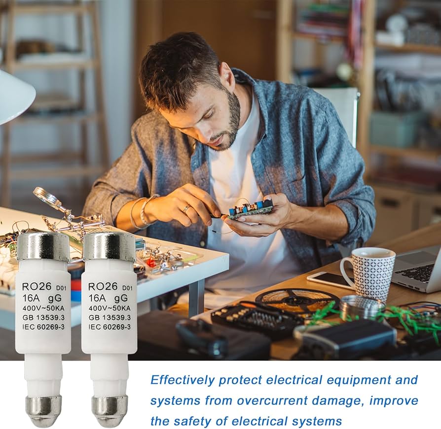 Livello di funzionamento: gG. Standard: IEC60269-3 Ha un'eccellente capacità di spegnimento e una lunga durata, garantendo un funzionamento stabile a lungo termine. Wengart Fusibile A Spirale D01, 10 Pezzi, 10 A AC400VDC250V, GG Yype, Fusibile Di Distribuzione Dell'alimentazione, Adatto Per Elettrodomestici E Sistemi Di Distribuzione Questo fusibile a spirale adotta un design a spirale avanzato che può interrompere rapidamente il circuito in caso di sovraccarico o cortocircuito, proteggendo efficacemente i tuoi dispositivi elettrici Il design a spirale può aumentare la lunghezza del fusibile, migliorando così le prestazioni di fusione e la velocità di reazione. Questo fusibile a spirale può sciogliersi rapidamente quando si verifica una corrente pericolosa e il tempo di risposta è di soli millisecondi, quindi i tuoi dispositivi elettrici sono immediatamente protetti. Questo fusibile domestico è realizzato con materiali di alta qualità ed è riempito con materiali professionali per l'estinzione ad arco. Corrente nominale: 10 A/16 A. È adatto per un facile utilizzo da parte di utenti domestici e industriali, risparmiando tempo e costi. Questo fusibile in ceramica a spirale è adatto a vari apparecchi elettrici, inclusi elettrodomestici (come frigoriferi, condizionatori d'aria), macchine industriali e sistemi di distribuzione dell'energia ed è una scelta ideale per garantire la sicurezza elettrica I fusibili a spirale sono ampiamente utilizzati in elettrodomestici, impianti industriali e sistemi di distribuzione dell'energia e sono una parte importante per garantire la sicurezza elettrica. Capacità di spegnimento: AC400V50kA DC250V8KA Viene utilizzata per la protezione da sovraccarico di elettrodomestici come frigoriferi, condizionatori d'aria e lavatrici ed è utilizzata per prevenire sovraccarichi e cortocircuiti in impianti industriali come motori e trasformatori, nonché per proteggere il funzionamento sicuro dei circuiti e delle apparecchiature nei sistemi di distribuzione dell'alimentazione. Il design del fusibile a spirale consente tempi di risposta più rapidi agli errori di sovraccarico e cortocircuito e può interrompere l'alimentazione in tempo per ridurre il rischio di incidenti.