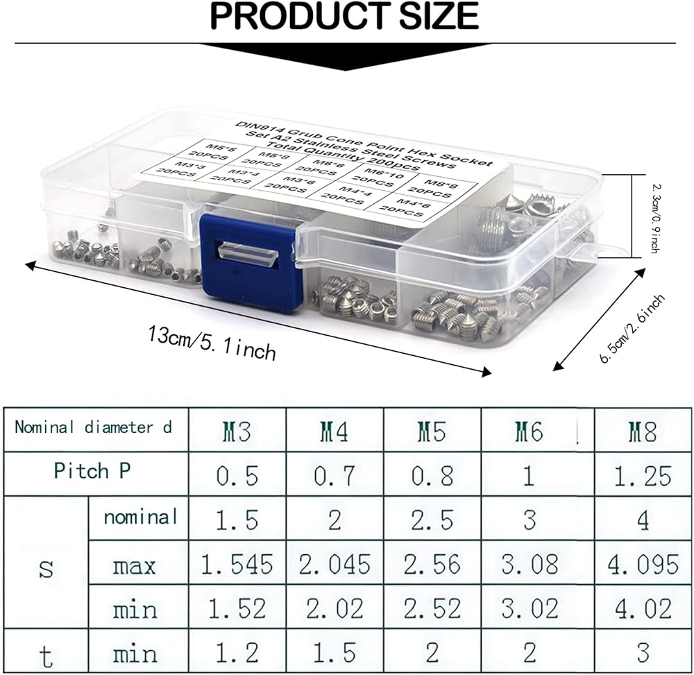 Le migliori offerte per 400 Pz Viti Senza Testa M3/M4/M5/M6/M8 Grani Viti a Testa Esagonale Viti per sono su Confronta prezzi e caratteristiche di prodotti nuovi e usati Molti articoli con consegna gratis La confezione contiene: totale 400 pezzi, 10 misure, 40 pezzi per ogni misura: M3 x 3 mm, M3 x 4 mm, M3 x 10 mm, M4 x 4 mm, M4 x 6 mm, M5 x 5 mm, M5 x 8 mm, M6 x 6 mm, M6 x 10 mm, M8 x 8 mm e 5 chiavi esagonali (M3/M4/M5/M6/M8) per soddisfare le esigenze di diverse aree e luoghi. Set di grani: la filettatura è profonda e chiara, il passo è uniforme, il morso è buono, la forza è uniforme, non c'è offset e non gira. Materiale ad alta durezza: i grani sono realizzati in acciaio legato di alta qualità ad alta durezza con lavorazione squisita, forte resistenza alla corrosione e alla ruggine, resistenza ai graffi, non facile da rompere o deformare e possono mantenere buone prestazioni in qualsiasi ambiente ed è durevole. Ampia gamma di applicazioni: adatto per maniglie di porte, rubinetti, staffe, pulsanti, strumenti di precisione, contatori, prodotti elettronici, tubi, prodotti di comunicazione, serrature, lampade, illuminazione e altre aree. Viti Senza Testa Catalogo 400 Pz Viti Senza Testa, M3/M4/M5/M6/M8 Grani Viti A Testa Esagonale, Viti Per Legno, Viti A Brugola, Viti A Testa Esagonale Incassata Per Maniglie Porte, Rubinetto, Con 5 Chiave A Brugola : Amazon.it: Fai Da Te Marco Viti Tutte le maniglie delle porte a vite vengono fornite in una scatola per facilitarne il trasporto e l'utilizzo, così puoi trovare rapidamente e facilmente la dimensione giusta.