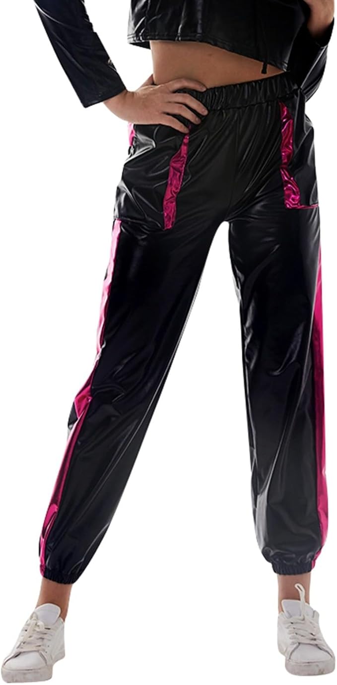 Pantaloni Da Jogging In Metallo Lucido Da Donna In Pelle Verniciata A Vita Alta 80 Anni 90 Carnevale Festival Party Discoteca Hip Hop Costume Clubwear, 02-kit (Livello Di Livello), M : Amazon.it: Giochi E Giocattoli