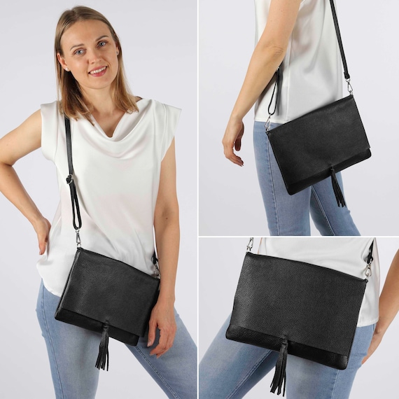 Borsa A Vita Nero Per Donne Con Cinturino A Motivi, Borsa A Tracolla In Pelle Con Zip Argento, Borsa A Tracolla Per Tablet Con Cintura L - Italia