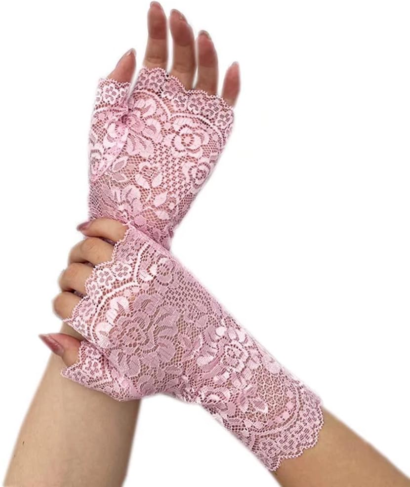 Smiffys Guantes De Encaje Sin Dedos Años 80, Rosa Flúor, Cortos