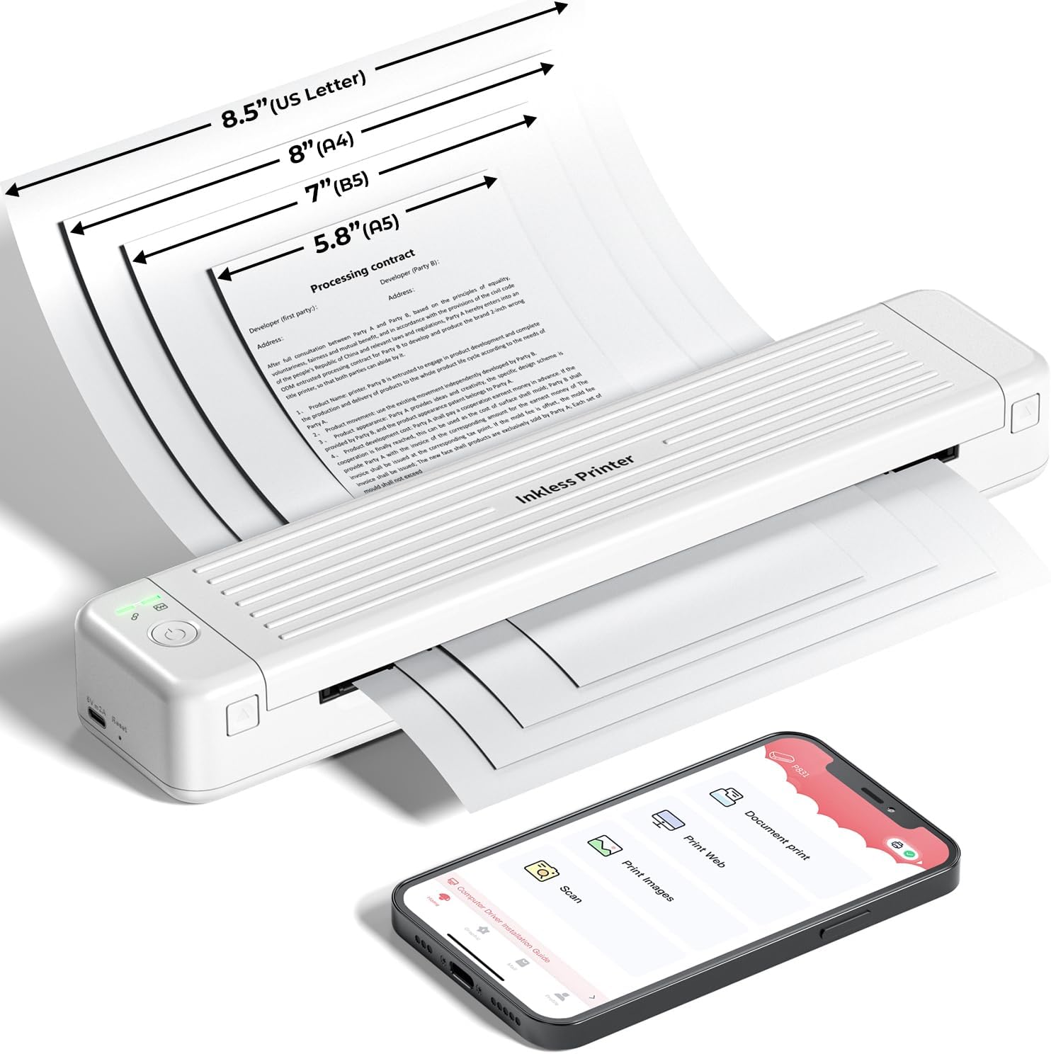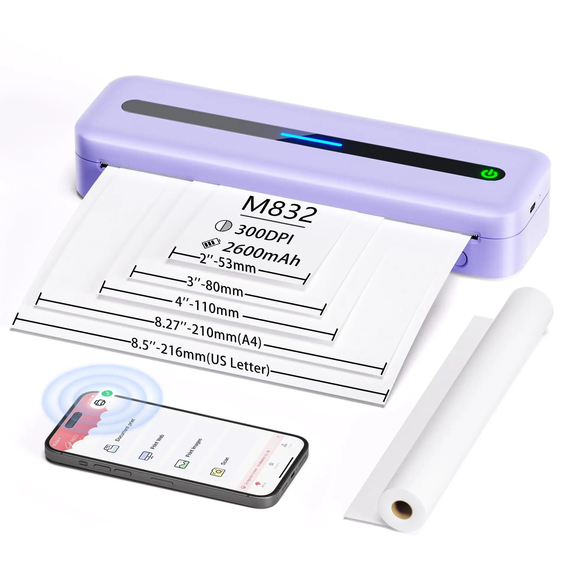 Phomemo M08F Stampante Portatile A4, Bluetooth Stampante Termica Supporta Formato A4, Stampante
