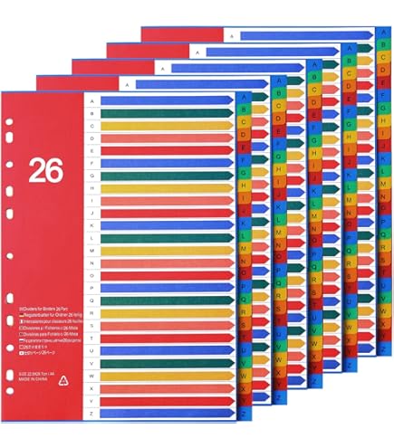GUOKOFF Divisori Per Raccoglitori Ad Anelli, 5 Pezzi Divisori File A4, Divisori Raccoglitori In 26 Parti, Divisori Per Cartelle Con Schede A-Z