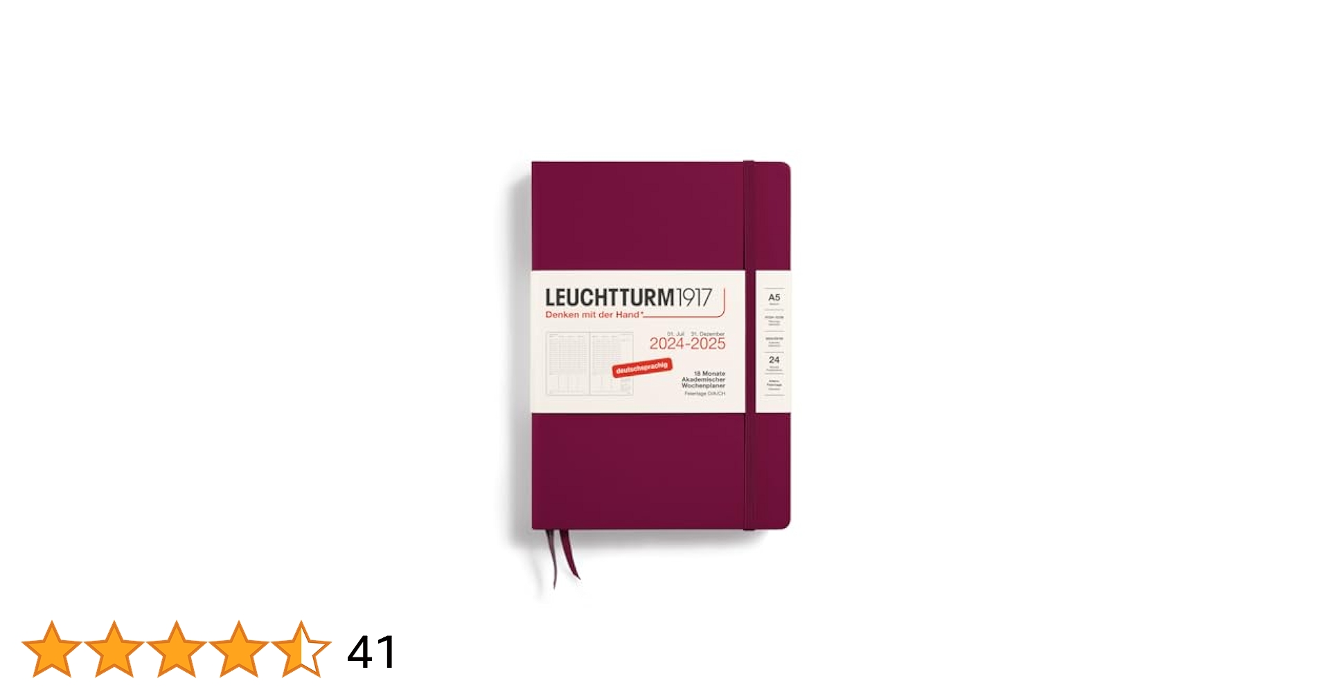 Agenda 2025 2026 Leuchtturm1917 Medium A5 2026 Weekly Planner & Notebook - Dusty Rose, - The Goulet Pen Company Agenda 2025 2026 Settimanale 18 mesi (01 luglio 2025-31 dicembre 2026) come calendario settimanale (A5) con copertina rigida in versione tedesca. Con chiusura in gomma e 2 segnalibri, tasca pieghevole nella copertina e etichette titoli e dorso per scrivere e archiviare, dimensioni: 145 x 210 mm Incluso libretto extra per compleanni e indirizzi nella tasca della copertina. Dimensioni 14,5x21 cm Con panoramica di 3 anni (2025, 2026, 2027), panoramica della pianificazione (luglio 2025-dicembre 2027), alcuni fogli staccabili per le note sul retro dell'agenda, fasi lunari e interne. Vacanze.