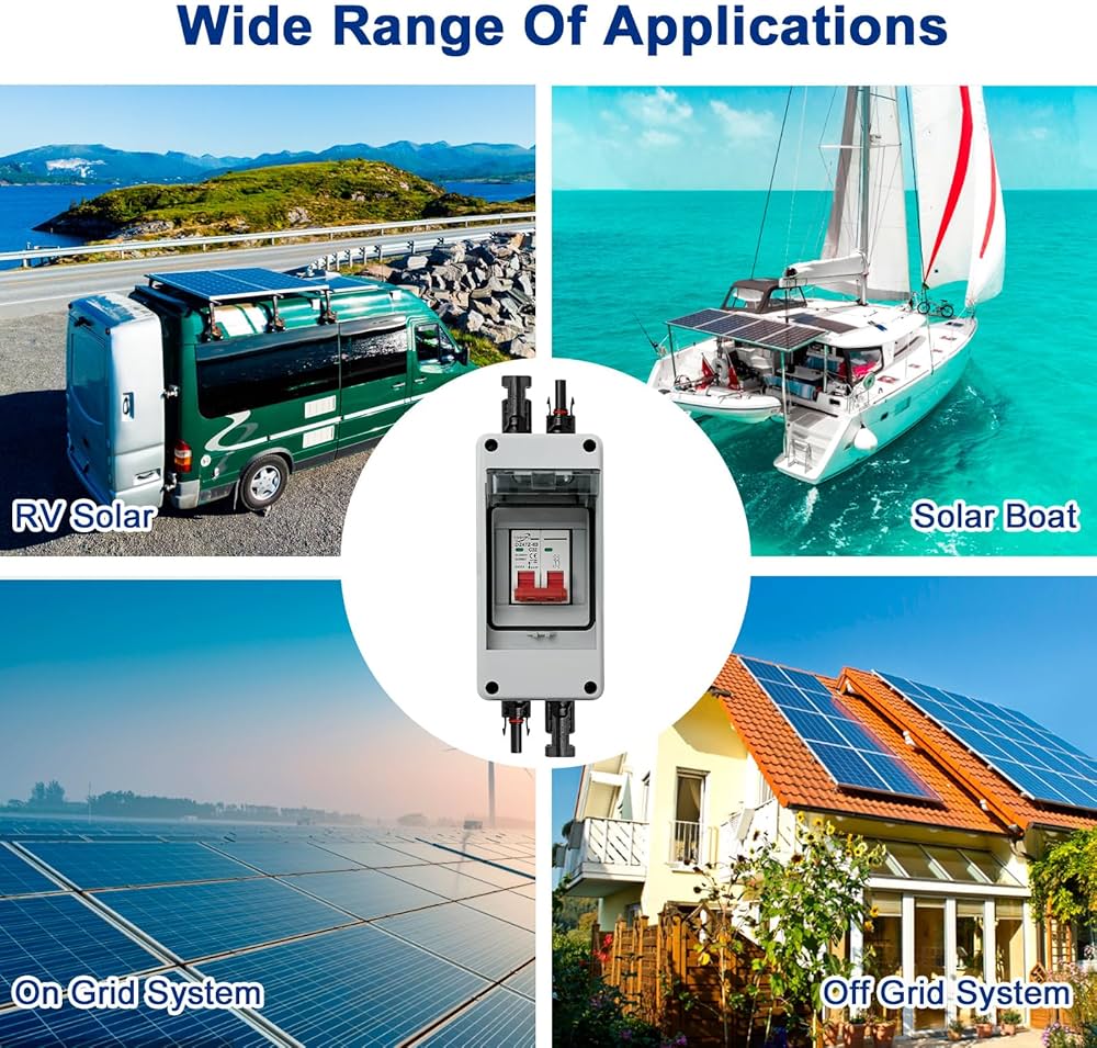 【Cablaggio e installazione rapidi】 Dimensioni compatte e peso leggero. 【Per circuito CC】 L'interruttore automatico MCCB viene utilizzato principalmente per linee elettriche CC, consente la protezione da cortocircuito, sovraccarico e spegnimento manuale di emergenza. Jadeshay Interruttore Fotovoltaico Dc 2P Interruttore Isolatore Miniaturizzato DC Interruttore Batteria Solare Protezione Isolatore Per PV Anlage 250A 500V Interruttore Per Batteria Fotovoltaica INTERRUTTORE ISOLATORE FOTOVOLTAICO DC/AC 30A IP65 Interruttore Di Separazione Per Pannelli Interruttore Differenziale A Riarmo Automatico 【Capacità di interruzione rapida】 I terminali di grandi dimensioni forniscono una migliore conduttività. 【Applicazione】 Ampiamente applicato nei sistemi di generazione di energia fotovoltaica e nei sistemi di generazione di energia eolica; È anche ampiamente utilizzato nell'energia idroelettrica, nelle automobili, ecc. Soddisfa i requisiti applicativi in varie occasioni e può funzionare in modo affidabile in ambienti difficili. Il potere di interruzione di 20 KA e la corrente massima di 250 A consentono l'uso in linee DC12V‑5000V, ideali per 12V, 24V, 36V, 48V, ecc. Descrizione prodotto Sono disponibili interruttori isolati per linee DC12V-5000V a 12V, 24V, 36V, 48V e altre tensioni.