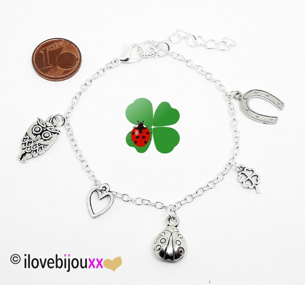 Bracciale Quadrifoglio ACCIAIO Portafortuna Con Ciondolo Uomo Donna