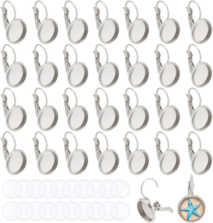 UNICRAFTALE Kit Per La Creazione Di Orecchini A Bottone A Forma Di Vassoio Da 40 Pz 4 Dimensioni 304 Orecchini A Bottone Con Toppa In Acciaio Inossidabile Cabochon In Vetro Trasparente E