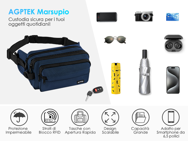 AGPTEK Marsupio Da Uomo E Donna, Impermeabile, Con 5 Scomparti Singoli