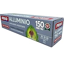 FRIO - Alluminio rotolo alimenti, carta alluminio 150 metri con Seghetto Incorporato, per cucina professionale, carta argentata cucina confezione scorta. Duttile, passa dal gelo al frigo al forno ♻️ Formato 33 cm x 150 metri ♻️ Protegge il cibo da contaminanti esterni Carta Alluminio Per Alimenti 1 PER ALIMENTI DA 100 METRI CON ASTUCCIO - CARTA STAG Rotolo Alluminio ♻️ Utilizzabile nel forno tradizionale e nel forno a microonde ♻️ Ideale per il confezionamento e la conservazione degli alimenti
