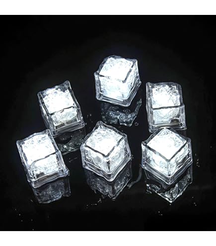 Set da 12 pezzi: durevole e sicuro per bevande, pronto all'uso e garantisce colori vivaci e effetti di luce in ogni festa o al bar di casa. Riutilizzabile e impermeabile: realizzato in plastica alimentare di alta qualità, sicuro per le bevande e con una lunga durata di illuminazione per un divertimento prolungato. Ideale per cocktail, whisky, champagne, bibite analcoliche e bevande per feste, non refrigeranti. Ideale per cocktail e decorazioni per feste. Luce Cubetto ALLOMN Cubetti Di Ghiaccio A LED Illuminati Per Bevande Vino Whisky Cocktail, 12 Pezzi Cubi Di Ghiaccio LED Lampeggianti Multicolori Sensore Di Luce Riutilizzabile Attivato Dall'Acqua Incandescente Cubetti Ghiaccio Riutilizzabili I cubetti di ghiaccio a LED lampeggianti creano un'atmosfera impressionante per matrimoni, club, bar, feste di compleanno e altri eventi speciali.