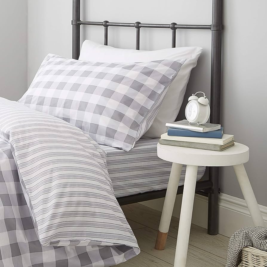 Bianca CHECK AND STRIPE GREY SET COPRIPIUMINO 200X200+2(50X80) : Amazon.it: Casa E Cucina