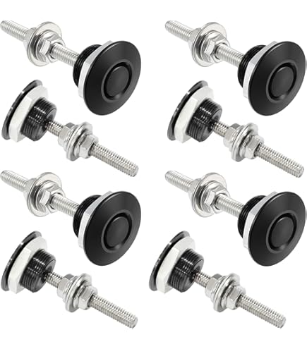 These latches prevent your license plates, hood, front and rear bumpers from vibrating while driving or cornering. Use on hood, gives your car a new stylish look Ganci di rilascio a pulsante multifunzione versatili, che forniscono una semplice soluzione a pulsante per la maggior parte delle applicazioni. Materiali di alta qualità Alluminio lavorato CNC + vite in ferro, la lega di alluminio ha bassa densità, alta resistenza, eccellente conduttività elettrica, conduttività termica e resistenza alla corrosione. Houdini Stop ANJOSHI Pack Of 2 Quick Release Latch Lock Clip Push Button Push Lock È necessario praticare dei fori per installarlo correttamente sulla cappa. Proteggi il tuo vano motore e chiudi saldamente il cofano della tua auto.