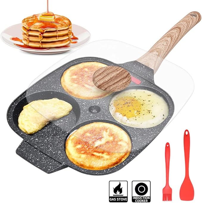 【Materiale Premium】 La padella per uova è realizzata in ghisa di alta qualità, la padella è robusta e durevole, riscaldata uniformemente, facile da preparare una deliziosa colazione. Il rivestimento è innocuo e antiaderente, garantendo che la tua cucina quotidiana sia più semplice e più sana. Padella In Ghisa PADELLA ANTIADERENTE PADELLA Per Uova Padella Per Friggere Comoda Piastra Pancake Sorandy Padella Antiaderente per Pancake da 4 Tazze, Padella per Uova Divisa in Lega di Alluminio, Padella per Friggere le Uova, Padella Multi-uovo per Cucinare la Colazione Grande capacità e facilità di cottura. 4. Per la frittura: la padella per uova da 4 tazze è perfetta per friggere uova, preparare frittelle, omelette e hamburger. 5. Ampia compatibilità: la nostra padella per cuocere le uova può essere utilizzata su piani cottura a induzione, a gas, elettrici e in ceramica. Il manico è realizzato in legno composito, che ha buone proprietà di isolamento termico e protegge dalle bruciature. Il rivestimento antiaderente offre prestazioni di rilascio facili e pulizia senza sforzo. 9 cm / 3,5 pollici Lunghezza dopo il montaggio: ca. 【Riscaldamento rapido e uniforme】 La nostra padella per pancake vanta un design del fondo esteso, garantendo una distribuzione del calore più rapida e uniforme rispetto alle tradizionali padelle antiaderenti. 【Antiaderente e facile da pulire】La padella per uova è molto facile da pulire con acqua. Funzione: 1. Materiale di alta qualità: la padella per le uova è realizzata in ghisa di alta qualità, la padella è robusta e resistente, si riscalda anche, è facile preparare una deliziosa colazione. 2. Rivestimento antiaderente: il cibo non si attacca più al fondo della padella ed è facile da rimuovere. 3. Facile da lavare: la padella per uova da 4 tazze è molto facile da lavare con acqua dopo la cottura. 1800 g / 63,5 once dei pacchetti: 1 x padella per uova 1 maniglia Nota: Si prega di consentire alcuni errori dovuti alla misurazione manuale. 19,5x19,5 cm / 7,7x7,7 pollici Dimensioni del foro tondo singolo: ca. Specifica: Tipo di elemento: padella per uova Materiale: ghisa, legno composito Dimensioni della padella per uova: ca.