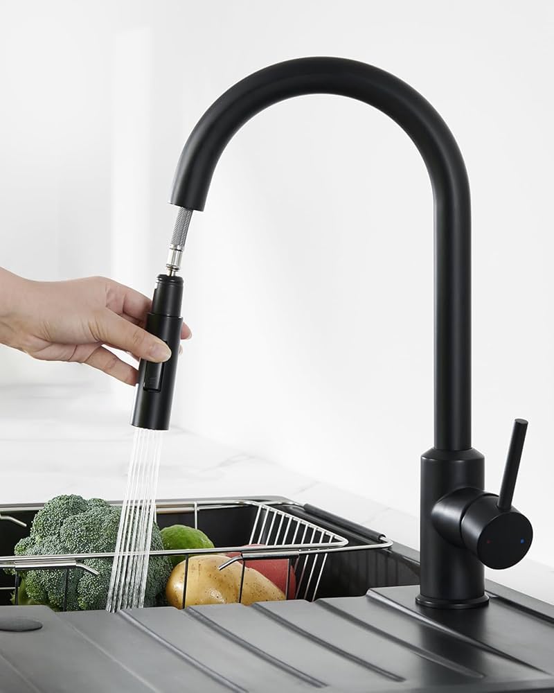 ANYCEE Rubinetto Lavello Cucina Nero, Miscelatore Cucina Con Doccetta Estraibile Girevole A 360 °, 2 Modalità Rubinetti Cucina, Acciaio Inox 304, La Valvola In Ceramica Assicura Durata : Amazon.it: Fai Da Te