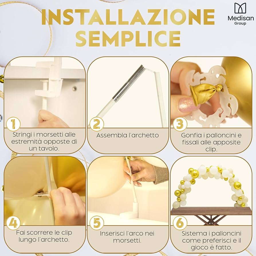 Arco Palloncini Struttura ARCO DA TAVOLO Per Palloncini - In Plastica, Riutilizzabile - 1 Pezzo Elio Per Gonfiare Palloncini ALTA QUALITÀ - Struttura per palloncini con morsetti a C prodotti con plastica super resistente BRAND ITALIANO - Noi di MEDISAN produciamo per te i migliori prodotto come questo supporto palloncini Kit Arco per palloncini, struttura in fibra di vetro SCENOGRAFICO - Fai una sorpresa speciale, decora l'arco per palloncini e crea la giusta atmosfera