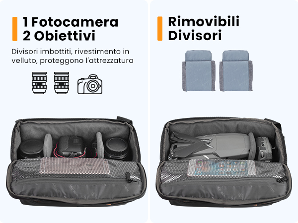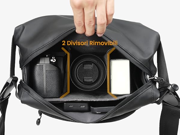 I divisori superiori pieghevoli e 5 divisori rimovibili extra possono utilizzare l'intero spazio della borsa a tracolla. 【Tracolla sinistra destra】 La borsa per fotocamera DSLR a spalla singola appositamente progettata per il trasporto universale a spalla destra e sinistra. Le migliori offerte per TARION TR-S Borsa a tracolla per fotocamera , Borsa da viaggio impermeabile Borsa sono su Confronta prezzi e caratteristiche di prodotti nuovi e usati Molti articoli con consegna gratis Zaino 40x20x25 TARION Borsa A Tracolla Per Fotocamera, Borsa A Tracolla Piccola Per Fotocamera SLR DSLR, Obiettivo, Accessori, ZONA, Zaini Trekking : Amazon.it Osmo Pocket 3 La borsa a tracolla fotografica può ospitare lunghi teleobiettivi o gimbal DSLR. Perfetto per escursioni, viaggi e fotografia all'aperto. Goditi la libertà di adattare e accedere alla tua attrezzatura con facilità, garantendo un'esperienza fotografica comoda ed efficiente per tutti. 【Realizzato per i viaggi】 Lo zaino a tracolla per fotocamera adotta una tracolla extra larga con rete a flusso d'aria per offrire il massimo comfort durante il trasporto di attrezzature pesanti. 【Accesso rapido a 3 vie】 La borsa a tracolla per fotocamera offre accesso dall'alto e accesso laterale da entrambi i lati, offrendo più punti di ingresso per un recupero rapido e conveniente della tua attrezzatura fotografica, in modo da poter catturare lo scatto perfetto da qualsiasi angolazione.