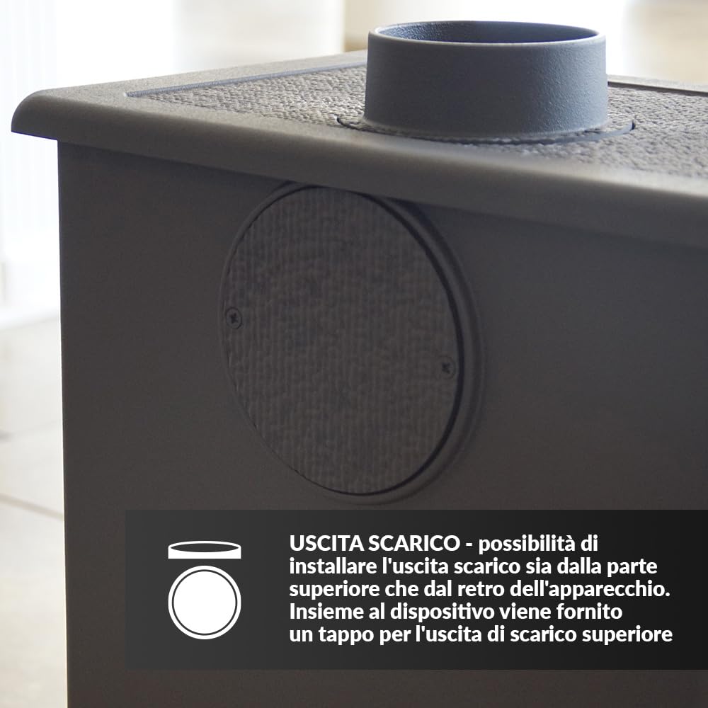 Inserto camino a legna con installazione versatile – L’uscita fumi può essere montata superiore o posteriore, adattandosi a ogni configurazione. Perfetto per ogni ambiente, unisce design raffinato, sicurezza e prestazioni elevate, rendendolo un complemento ideale per il riscaldamento domestico. La barriera decorativa protegge dalla caduta accidentale della legna, migliorando l’ordine e la sicurezza d’uso. Il cassetto cenere estraibile permette una facile gestione della combustione, mentre la regolazione dell’aria consente un controllo preciso della temperatura. Il sistema Clean Glass riduce l’accumulo di fuliggine, mantenendo il vetro più pulito più a lungo e offrendo una visione chiara della fiamma. Massimo sfruttamento del calore e funzionamento senza guasti grazie alle pareti del caminetto in ghisa di alta qualità, 8 mm di spessore. Combustione delle particelle di carburante grazie al deflettore che prolunga il percorso dei gas di scarico. Controll Il vetro ceramico termoresistente fino a 660°C assicura un utilizzo senza rischi, mentre la struttura solida in ghisa è progettata per resistere alle alte temperature. Realizzato in ghisa di alta qualità con pareti da 8 mm di spessore, garantisce un'ottima distribuzione del calore, una lunga durata e un utilizzo sicuro. L’impugnatura a freddo rimovibile garantisce sicurezza d’uso, mentre la barriera decorativa impedisce la caduta della legna dal focolare, migliorando ordine e pulizia Kratki Stufa a legna potente ed ecologico – Potenza nominale 5kW, gamma di riscaldamento 30-80 m². Grazie al suo sistema di combustione ottimizzato, questo camino a legna in ghisa sfrutta al massimo il calore prodotto. Con una potenza termica ideale per ambienti da 30 a 80 m², assicura un calore uniforme e riduce i consumi di combustibile, aumentando l’efficienza energetica. Stufa A Legna Nordica KRATKI Stufa A Legna In Ghisa KOZA K7 5kW Ø130mm |Gamma Di Potenza 3 Camino A Legna Il deflettore prolunga il percorso dei fumi, migliorando la combustione e riducendo i consumi di legna per un riscaldamento sostenibile. Perfetto per chi cerca un camino a legna in ghisa dal design classico e dall'efficienza elevata. Il cassetto cenere estraibile e la griglia mobile facilitano la pulizia.