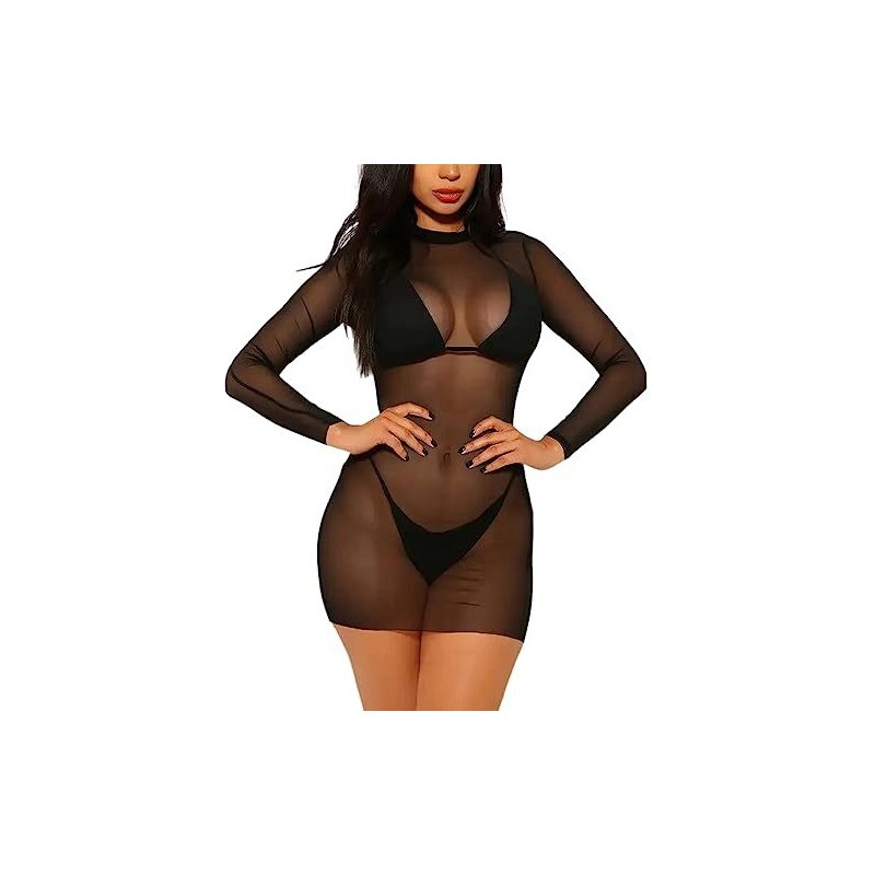👙Copri bikini fashion per donna, la più bella combinazione di eleganza e glamour! Offriamo un servizio clienti online 24 ore su 24, 7 giorni su 7. Se hai domande, ti preghiamo di contattarci prima di lasciare un feedback direttamente, affronteremo il problema immediatamente e con attenzione fino a quando non sarai soddisfatto. Intimo Sexy Biancheria Intima Da Donna Sexy Abito Da Sera Slip Bikini Corto Pareo Pareo Donna Mare È carino e offre protezione solare. Busto (68-96 cm); vita (78-90 cm); circonferenza fianchi: 84 cm; Lunghezza: 78 cm. 👙Morbido e comodo da indossare, abito unico che metterà in mostra le tue curve affascinanti. ●Per prendersi cura adeguatamente della copertura del vestito bikini in rete, si consiglia vivamente di lavare a mano questo indumento separatamente dagli altri indumenti. 👙Maglia semitrasparente a maniche lunghe con buona elasticità e tessuto morbido. L'abito in rete di tulle presenta un esclusivo scollo rotondo e una chiusura a mini maglione per una vestibilità aderente. Ed è per questo che ogni donna dovrebbe avere un costume da bagno come questo affascinante abito da piscina in rete. ✅ I DETTAGLI: √ Buon elastico √Maglia trasparente √Girocollo √ Manica lunga √Regolato √Mini abito √Colore: nero √Elasticità: Eccellente √Materiale: tessuto a rete √Lunghezza del vestito: sopra il ginocchio ✅ CONTENUTO DEL PACCO: 1 * mini abito trasparente ●Porta questo vestito trasparente al club e vivilo ragazza! ●Il bodycon in rete nera presenta biancheria intima solida sotto una rete aderente che va oltre il sexy.