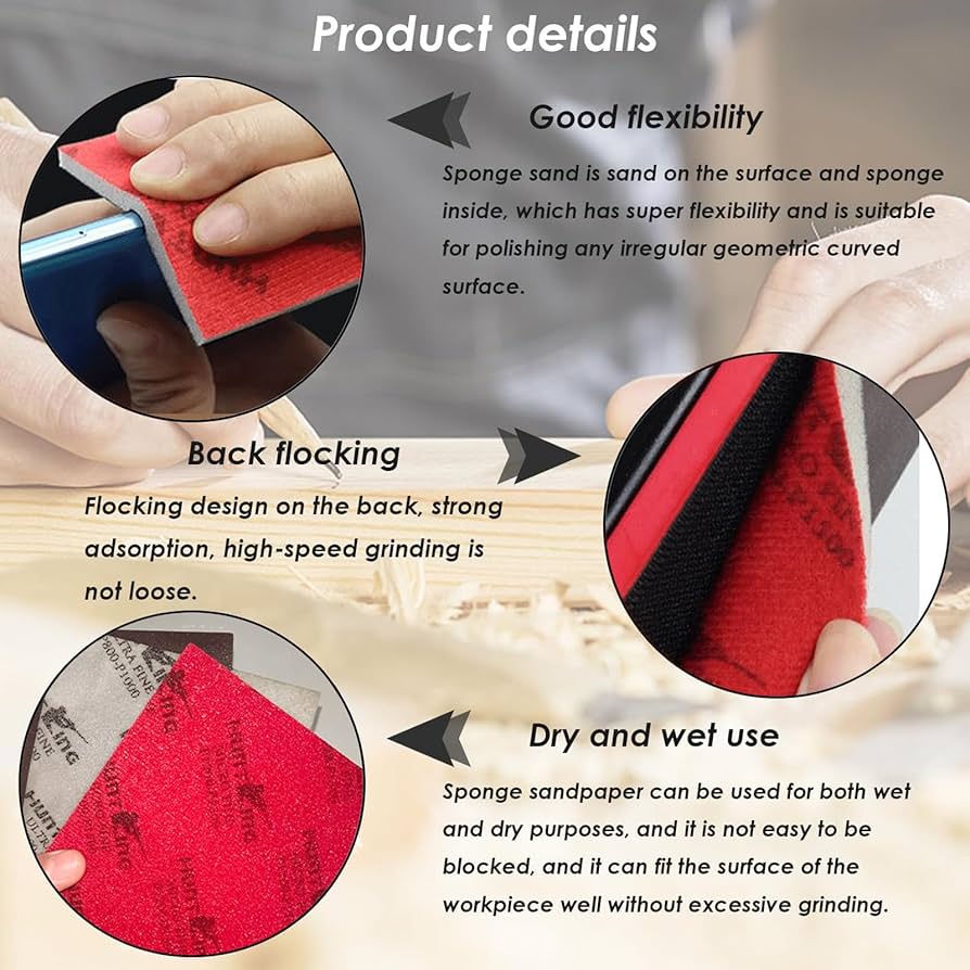 Possono essere utilizzati per la levigatura di bordi e dettagli e possono essere adattati agli angoli, resistendo alla levigatura, alla pulizia e alla strizzatura. 💟【Flessibilità ed Elasticità】Nella maggior parte delle applicazioni, i blocchi abrasivi per uso secco e bagnato superano la spugne per levigare alla loro flessibilità, elasticità, morbidezza e capacità di piegarsi. Spugne Abrasive Scrub Daddy Spugna UILYNIU 8 Pezzi , 36/80/120/180 Spugna Magica, Lavabile E Riutilizzabile Carta Vetrata, Spugnette Abrasive Blocco Fine Metalli, Per Vernice Su Legno, Parete, Metallo Spugnetta Abrasiva Industriale Carta Vetrata Legno Progettato per la levigatura su entrambi i lati, duraturo, riutilizzabile, lavabile e asciugabile. Il spugne abrasive per legno si adatta perfettamente a superfici piane e irregolari. Sono facili da maneggiare e da afferrare, rendendo più semplice la levigatura di aree difficili. 💟【Ampia Gamma di Utilizzi】Ideale per la pulizia degli utensili da cucina, la lucidatura dei mobili in legno, la rimozione della ruggine e la lucidatura dei metalli, la levigatura rapida dei materiali, i lavori artigianali, i modelli in plastica, la riparazione di pareti a secco, ecc. Buona elasticità, facile da usare e con una lunga durata.