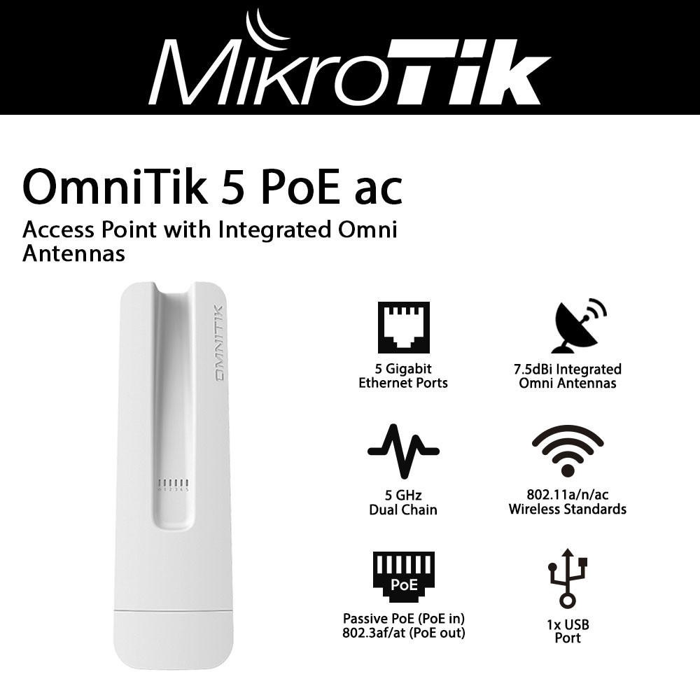 Mikrotik OmniTIK 5 ac punto accesso WLAN 54 Mbit/s Supporto Power over Ethernet (PoE) Bianco: acquista online nel reparto Informatica di ! , l'altro eCommerce. CartaEffe Confezione regalo Punti di ritiro Buoni regalo 18App Carta del docente. Ass Mikrotik 5ghz Router MikroTik OmniTIK 5 PoE Ac OmniTIK 5 PoE Ac, 54 Mbit/s, AS-OMNITIK 5 POE Access Point Poe MikroTik OmniTIK 5 ac