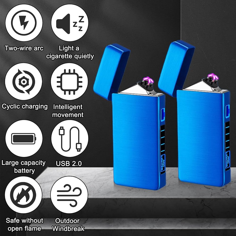 AngLink Accendino Elettrico, Accendino Dual Arco Elettronico USB Ricaricabile Con Indicatore Della Batteria, Antivento Senza Combustione Lunga Durata Per Candele Sigarette Cucina Grill