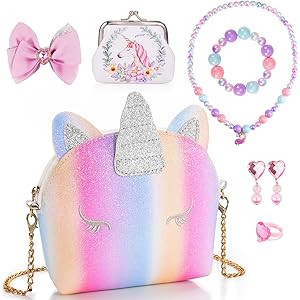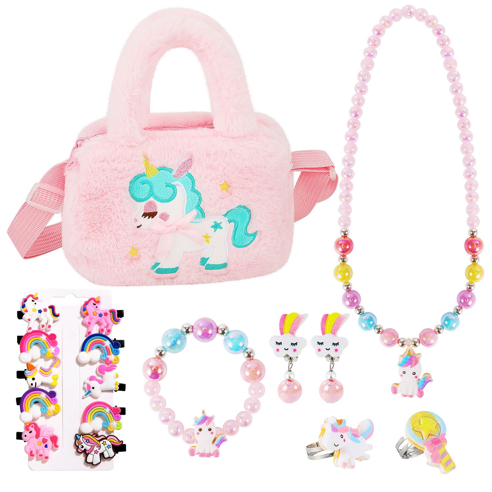 VGMANNTA Unicorno Bambina Regalo Borsetta Bambina Gioielli Bambina Unicorn Bracciale Orecchini Anelli Collana Set Accessori Per Capelli Mollette Per Capelli Regalo Bambina 4-8 Anni Giochi Bambina-R : Amazon.it: Giochi E Giocattoli