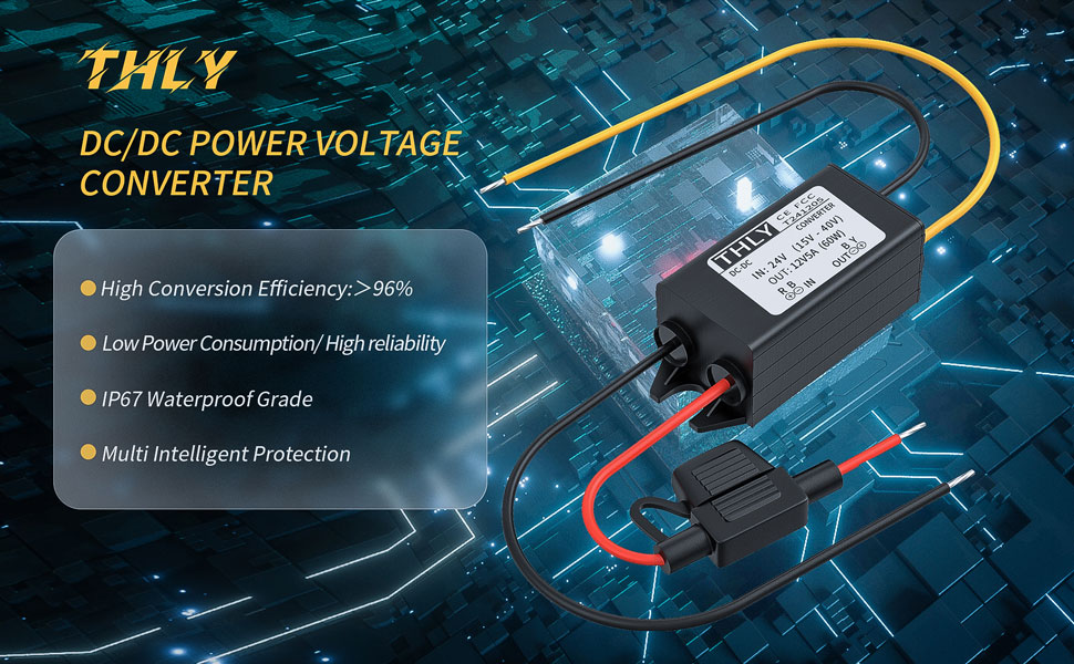 [Miglior Servizio Post-vendita] La nostra azienda offre 12 mesi di garanzia. Convertitore 12V 24V ] Questo trasformatore da 12 a 24 volt 12V a 24V converte la DC 12V in DC 24V . Basso consumo energetico. Ingresso di tensione: DC 9-20V, uscita: DC 24V . Corrente massima: 5A 120W . [Convertitore da 12 a 24 Volt] Questo step up dc [Fusibile e Più Sicuro] Per la sicurezza degli utenti, la nostra tensione di alimentazione trasformatore da 24 a 12 volt è dotata di fusibili. Ingresso di tensione: DC 15-40 V, uscita: DC 12V. Corrente massima: 5A 60W. ATTENZIONE: 1. Si prega di confermare se la tensione di uscita è corretta prima dell'uso; 2. Confermare la polarità positiva e negativa dell'alimentazione prima del cablaggio; 3.È necessario collegare il cavo negativo di ingresso a GND o prima dell'uso, altrimenti i volt di uscita non cambieranno! Nota: striscia il cavo 0,4 (10mm o giù di lì) e inseriscilo nel connettore. In caso di problemi con adattatore 24v 12v, non esitate a contattarci per una sostituzione gratuita o un rimborso del 100%. [Connettori Elettrici a Cablaggio Rapido Facile da installare] Questo trasformatore 24 12v viene fornito con terminali di rilascio rapido che è molto facile da installare. Il convertitore da 24V a 12V è dotato di connettori rapidi per il collegamento rapido. [Impermeabilità IP67] Questo dc 24v a 12v convertitore ha adottato la tecnologia di riempimento e sigillatura di gel di silice organico a conduzione termica, impermeabile, antiurto, antiumidità e antipolvere. Convertitore 24 12 Volt 12V 24V A 5V Regolatore Di Tensione (Accetta Ingressi CC 8-40 V) 5A 25W Con Fusibile Impermeabile E Connettori Elettrici A Cablaggio Rapido, Step Down Converter Per Elettronica Auto Camion Trasformatore 24v Il che lo rende può essere utilizzato all'aperto con forti piogge o altre condizioni meteorologiche avverse. Quando la tensione è troppo alta, la corrente supera (5A), il circuito è rotto o anormale, il fusibile salterà e il trasformatore smetterà di funzionare, proteggendo così gli apparecchi elettrici.