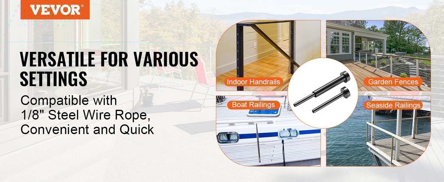 Robusto e flessibile: cavo in acciaio inossidabile da 1/8 (3,18 mm) che si basa sulla struttura intrecciata 7 x 7. Rispetto ad altri design del nucleo, 7 x 7 bilancia sia la flessibilità del cavo che la sua resistenza portante. Il cavo in acciaio funziona bene per piegarsi o piegarsi quando si decora la recinzione del giardino. Migliora i tuoi progetti con il cavo in acciaio inossidabile di . Progettati per resistenza e durata, i nostri cavi offrono soluzioni sicure per le applicazioni. ... Fune Metallica 3/16 Diametro 4,8mm Cavo in Acciaio Inox 304 Guardrail, Ringhi Resistenza alla ruggine e alla corrosione: il cavo in acciaio VEVOR da 100 piedi (30,5 m) è realizzato in acciaio inossidabile T304 di alta qualità con molibdeno aggiunto, che offre prestazioni migliori in termini di resistenza alla rottura e antiossidazione. Grazie all'eccezionale resistenza alla rottura e all'elevata capacità di trazione, questo cavo d'acciaio rimane teso e indeformabile indipendentemente dalla durata del suo utilizzo. Facile da installare e utilizzare: il cavo per aeromobili VEVOR è dotato di 20 manicotti in alluminio, 10 ditale, 10 viti a gancio, 3 moschettoni, 3 ganci di prolunga, 5 fermi a vite, 10 fascette per cavi, 1 chiave a bussola, 1 metro a nastro, 10 viti di espansione, 50 fascette e 1 manuale utente: tutto il necessario per un'installazione semplicissima. Costruito resistente per durare: la resistenza alla rottura del nostro cavo in acciaio inossidabile è di 1600 libbre (7,1 KN). Descrizione Prodotto Cavo in acciaio inossidabile VEVOR: resistente alle sfide esterne! Arricchito con molibdeno, il nostro cavo in acciaio presenta una maggiore resistenza e resistenza alla corrosione, tenendo lontana la ruggine anche dopo anni di utilizzo. È perfetto per avventure all'aria aperta di lunga durata. Cavo Acciaio 10 Mm VEVOR Kit Di Cavi Metallici Da 3,18 Mm 30,5 M Cavo In Acciaio Inossidabile 304, 124 Accessori, Resistenza Alla Rottura Di 7,1 KN 7 X 7 Fili Per Costruzioni Di Grado Aeronautico Cavo Acciaio 2mm