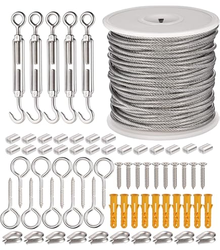 VEVOR Kit Di Cavi Metallici Da 3,18 Mm 30,5 M Cavo In Acciaio Inossidabile 304, 124 Accessori, Resistenza Alla Rottura Di 7,1 KN 7 X 7 Fili Per Costruzioni Di Grado Aeronautico