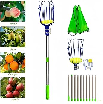 Strumento Per Raccogliere Frutta, Raccoglitrice Per Frutta Con Asta Telescopica In Acciaio Inossidabile Con Cestello,e Antiruggine Facile Da Montare Per Ottenere Mele, Alberi Da Frutto