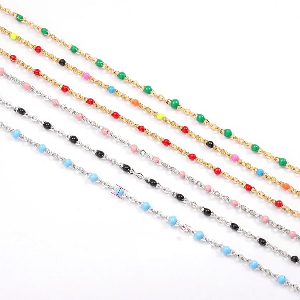 HAVLOC Catena Di Perline In Acciaio Inossidabile Da 2 Metri Catena Colorata In Oro Con Perline Smaltate Bracciale Fai-da-Te Per Collana