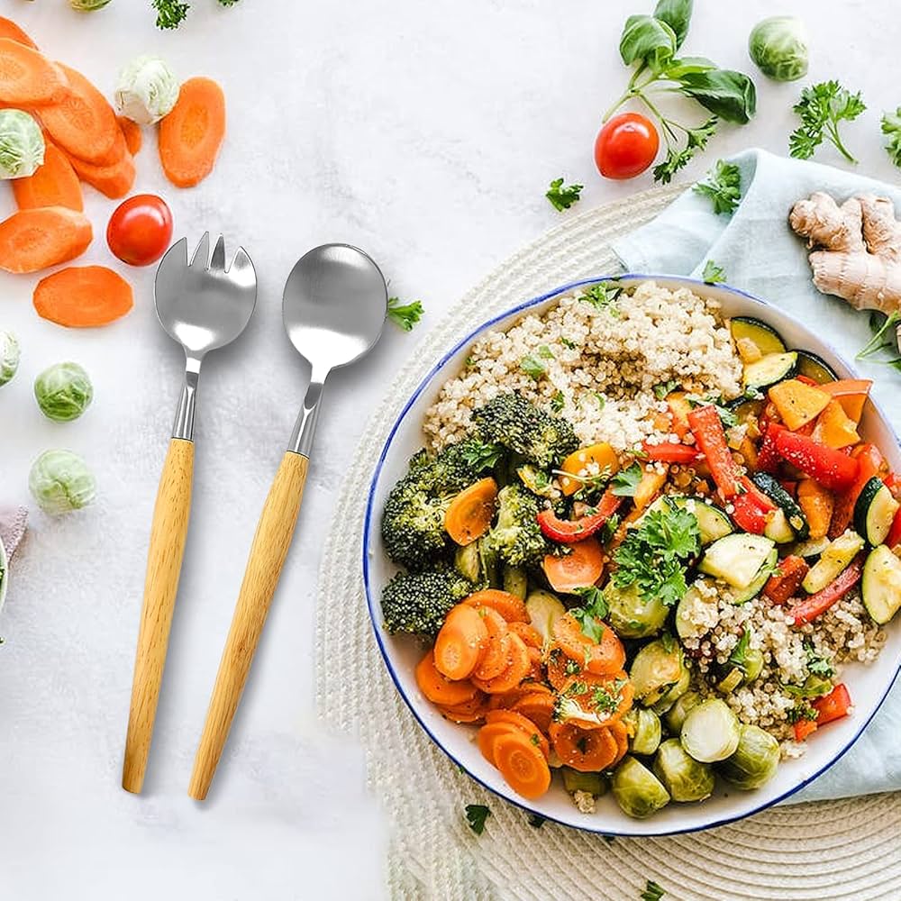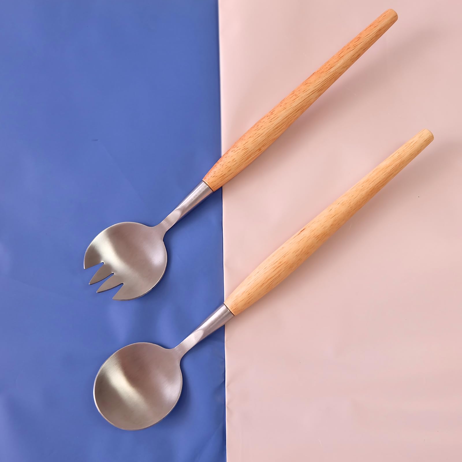 Posate Insalata In Acciaio Inox E Manico In Bambù 2 Pezzi Visola