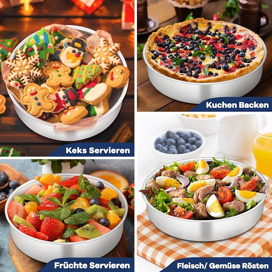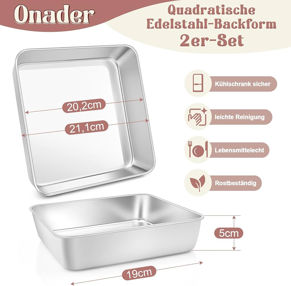 Suggerimenti caldi: Prima di utilizzare il nostro set da forno per la prima volta, si consiglia di immergerlo in acqua tiepida. Progettato con superficie rifinita a specchio, questa teglia per torte è facile da rilasciare il cibo e pulire senza problemi. Si prega di utilizzare con carta pergamena o ungere la teglia con olio per evitare la viscosità. Uso solido: la costruzione pesante trasferisce il calore in modo uniforme e rapido per evitare che si surriscaldi o centri gommosi, viene fornito con un peso adeguato e si sente robusto sulle mani, non si deforma o si deforma facilmente, riutilizzabile e di lunga durata per anni da usare Multifunzionale: totale 2 pezzi con misura 20 cm x 5 cm, adatto per forno domestico, congelatore, frigorifero o altre pentole, perfetto per cuocere a vapore e cuocere torte di compleanno, pane, torte e pizze profonde, anche efficiente come padella per insalata, frutta e snack, ottimo regalo per familiari e amici che amano fare torte Questo diventerà rapidamente uno dei tuoi gadget da cucina preferiti. Contenuto della confezione: 2 barattoli rotondi per torta. Design a lato dritto: crea un angolo di 90 gradi tra il lato e il fondo, perfetto per fare torte a strati, cheesecake o pizze profonde. 2 vassoi per torte in grado di soddisfare diverse esigenze di cottura allo stesso tempo. Caratteristiche: Salutare: realizzato in acciaio inossidabile senza rivestimento chimico, nessuna sostanza nociva perda al cibo anche ad alte temperature. Dimensioni: dimensioni esterne 21 cm, dimensioni interne 20 cm, altezza 5 cm. Materiali per uso alimentare: la tortiera Onader da 20,3 cm è realizzata in acciaio inossidabile 18/0 senza materiali tossici, non preoccuparti mai che il rivestimento chimico si diffonda nel cibo, sicuro e sano per l'uso quotidiano, ottimo sostituto per vassoi per torte in alluminio e Teflon Stampo senza cuciture A differenza della padella a molla, uno stampo da 24,1 cm aiuta a mantenere il cibo contenuto senza perdite e che le torte escano perfettamente. They are made with premium stainless steel for even heating Resistente: la struttura solida resiste alla deformazione o alla rottura, antiruggine e robusta per servire a lungo. Set Torta Onader Set Di 3 Stampi Rotondi Per Torte Da 20 Cm, In Acciaio Inox, Ideali Per Compleanni, Natale, Matrimoni, Torte, Atossici E Sani, Rifiniti A Specchio E Lavabili In Lavastoviglie Set Per Torte È anche un must per panettieri e decoratori. Resistente ai graffi e alla ruggine, facile da pulire con il lavaggio a mano, lavabile in lavastoviglie per risparmiare tempo e senza problemi. Onader - Set di 2 tortiere rotonde da 20 cm, realizzate in acciaio inossidabile di alta qualità, robuste e robuste per l'uso quotidiano.