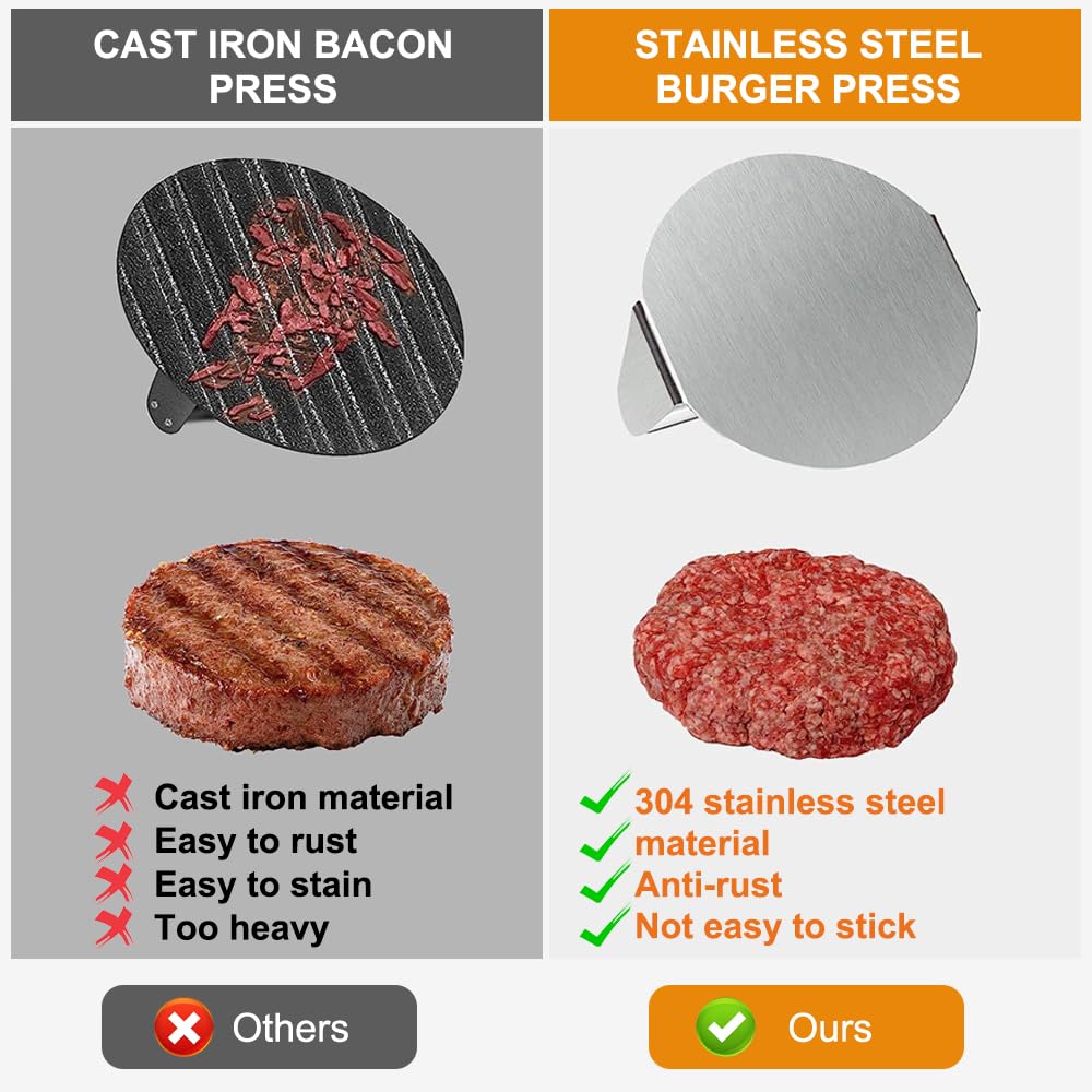 ✔Il nostro coperchio per bistecca in acciaio inossidabile è realizzato in puro acciaio inossidabile, leggero, durevole, antiruggine e di qualità alimentare, offrendo quindi una garanzia affidabile per la vostra cucina. È ampiamente utilizzato per cuocere carne di manzo, bistecche, hamburger, pancetta, sciogliere il formaggio, stufare verdure e coprire gli alimenti per proteggerli dalla polvere. ★ 【Mantiene caldi e riduce gli spruzzi】Il coperchio rotondo da bistecca in 4 pezzi soddisfa le diverse esigenze di cottura in interni ed esterni. In questo modo è possibile rimuovere il coperchio in modo sicuro dopo la frittura, senza ferire le mani. IN STOCK: BBQ-Toro Campana termica in acciaio inox con peso per carne in ghisa Campana per hamburger, MDS1 al miglior prezzo. Consegna rapida in tutta Italia ✔I nostri prodotti sono inoltre dotati di manici resistenti al calore, ergonomici e molto facili da tenere in mano, facilitando la cottura. Il materiale di alta qualità assicura che il manico non si sciolga e duri più a lungo anche dopo molte alte temperature. Pressa Hamburger Passatelli Attrezzo Spremiapatate Per Patate, Professionale, In Acciaio Inox, Schiacciapatate Manuale, Con Manico Antiscivolo, Per Alimenti Per Bambini, Frutta, Verdura Spatzle Attrezzo Campana Hamburger Prezzo Avete mai fritto una bistecca con un normale coperchio e avete notato che il coperchio non si attacca saldamente e compromette la consistenza della bistecca? Il coperchio corretto può aiutare a distribuire uniformemente la temperatura sulla bistecca per ottenere un riscaldamento più uniforme, può impedire che il succo di carne evapori troppo presto e la bistecca rimanga tenera e succosa, e può ridurre il tempo di cottura e risparmiare energia. ★ 【Versatile】Il nostro coperchio è un complemento ideale per padelle, barbecue a carbone o altri barbecue piatti. ➤ Parametri del prodotto: Materiale: acciaio inox. Con un diametro di 16 cm e un'altezza di 9 cm, funziona come un piccolo forno e offre molto spazio per sciogliere singoli cheeseburger, bistecche singole o singole pizze grigliate, cuocere a vapore verdure per una persona e molto altro ancora. Tecnologia della superficie: levigata + lucida. ✔Che tu sia un maestro chef o una casalinga, il nostro coperchio per bistecca in acciaio inossidabile diventerà uno strumento indispensabile nella tua cucina, con il quale puoi preparare facilmente deliziose bistecche e goderti un meraviglioso tempo di cottura. ★ 【Cottura uniforme】 Questo bordo a cupola in acciaio inox si adatta perfettamente a tutte le pentole piatte e concentra abbastanza calore per cuocere la carne in modo uniforme, sciogliere il formaggio e cuocere a vapore le verdure in meno tempo, garantendo ogni volta che hamburger cotti perfettamente o bistecche insanguinate.